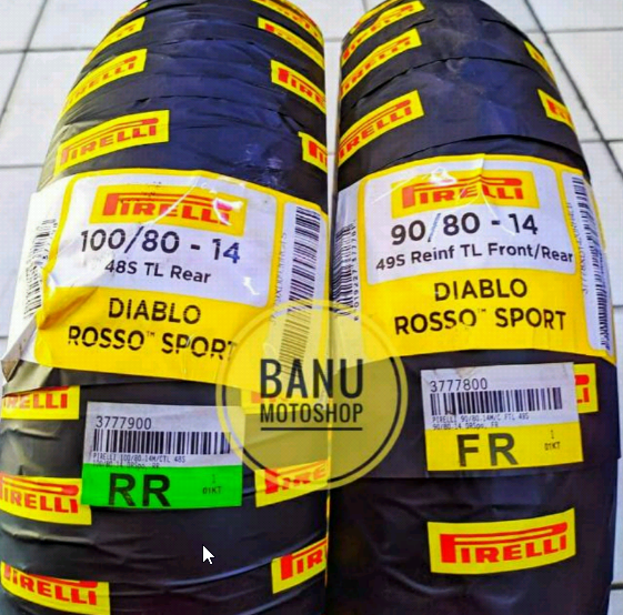 BAN MOTOR PIRELLI DIABLO ROSSO SPORT DEPAN BELAKANG TUBELESS / TUBLES MOTOR MATIC BEAT VARIO SCOOPY PCX RING 14