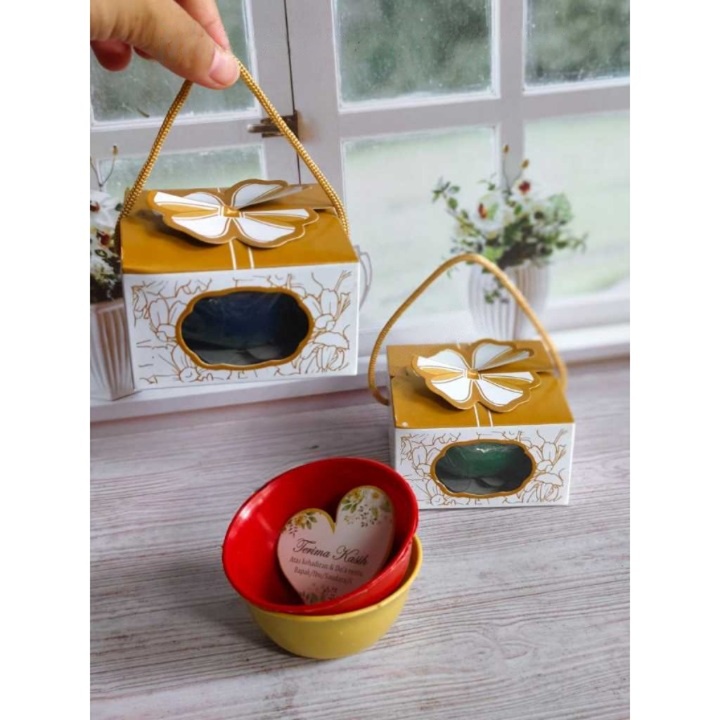 (isi 100) SOUVENIR MANGKOK SAMBAL BULAT WARNA WARNI KEMASAN BOX MOTIF GOLG + TALI TW