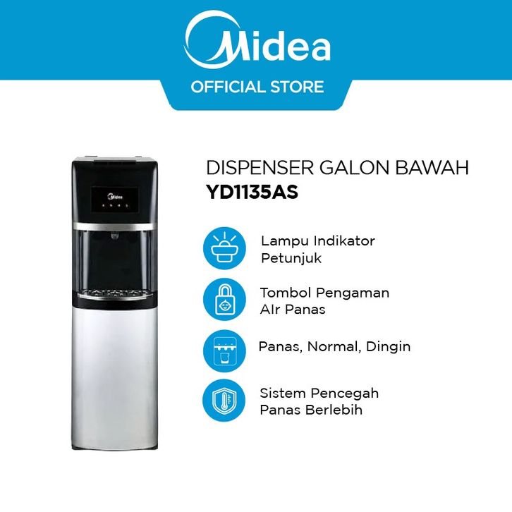 Midea Dispenser Galon Bawah hemat daya - YD1135AS Bottom Loading Water Tank Stainless Steel / Midea Dispenser Galon