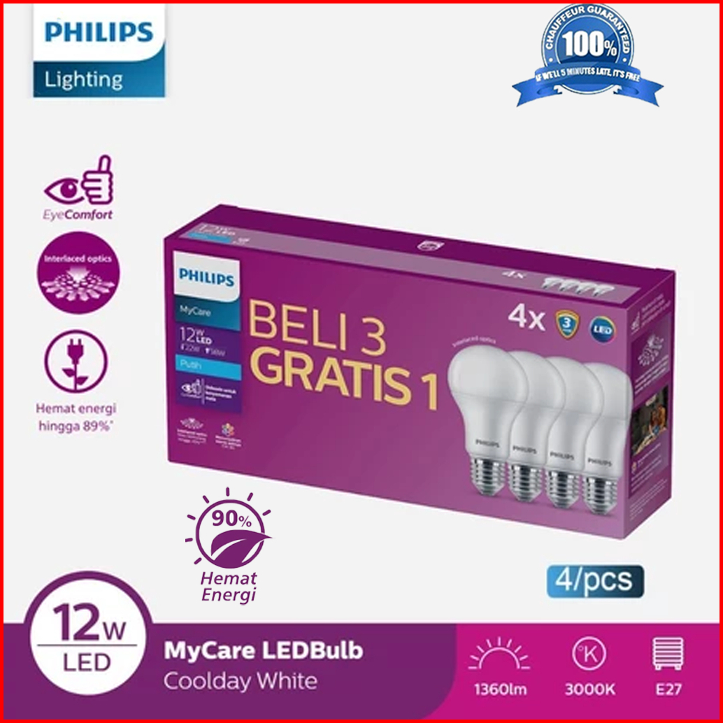 Philips Lampu Multipack Mycare Ledbulb 4w 6w 8w 12w 14.5w 4pcs 6500k Putih