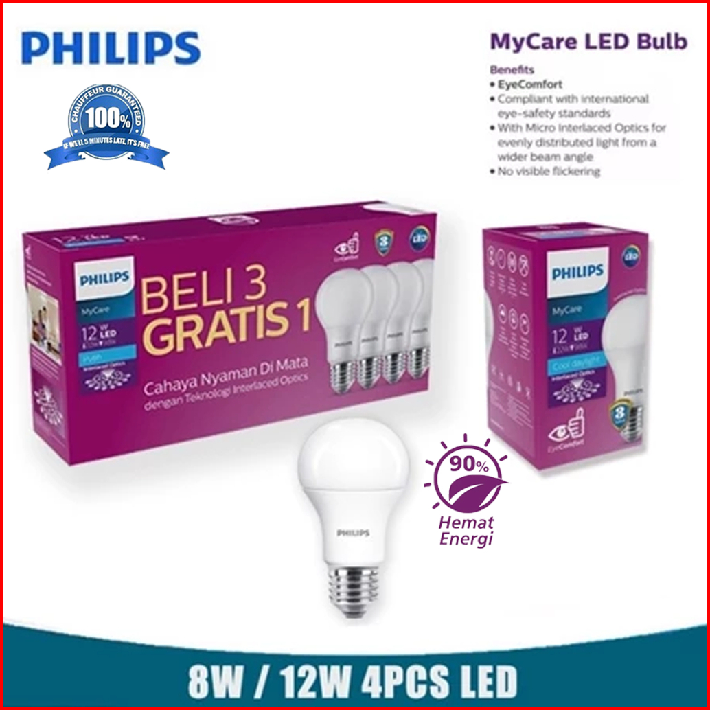 Multipack Philips Mycare Ledbulb 12w 8w 12w 4pcs 6500k Putih