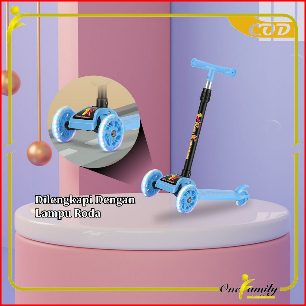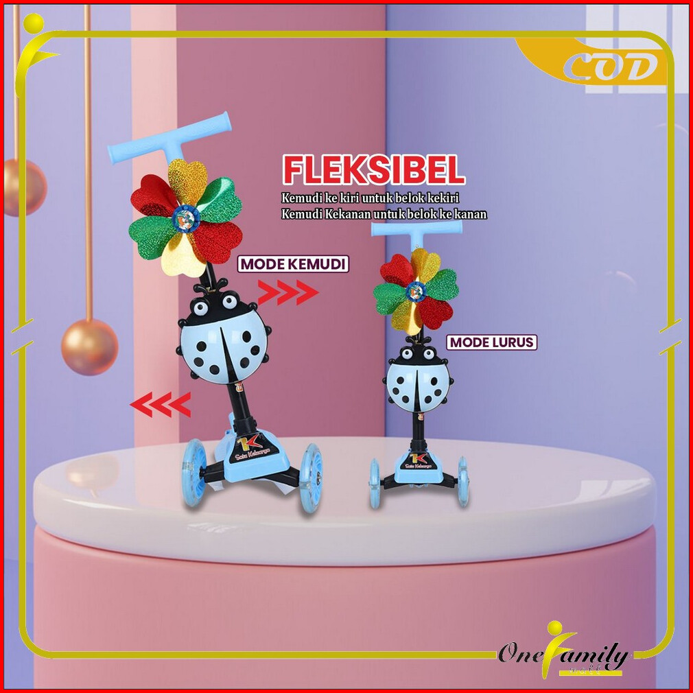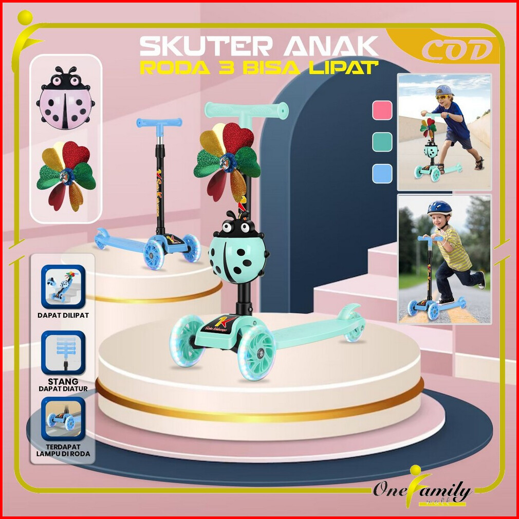 One-m95 Mainan Otopet Scooter Anak Otoped Kumbang Skuter Anak Roda 3 Bisa Lipat Lampu Led Roda Murah