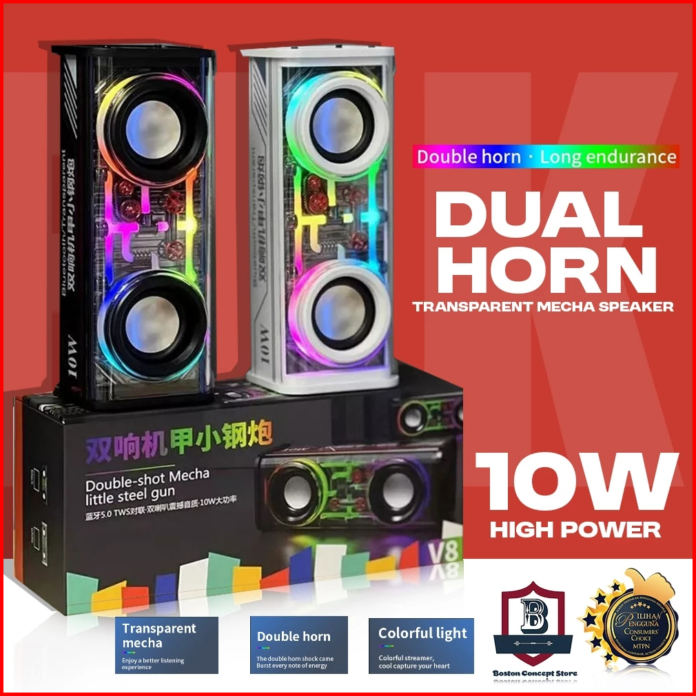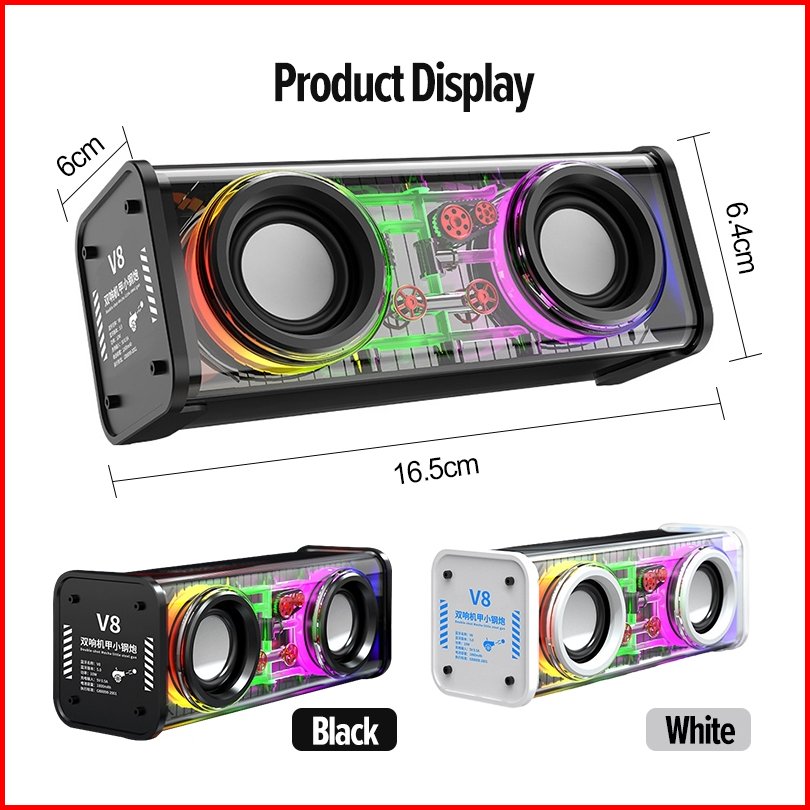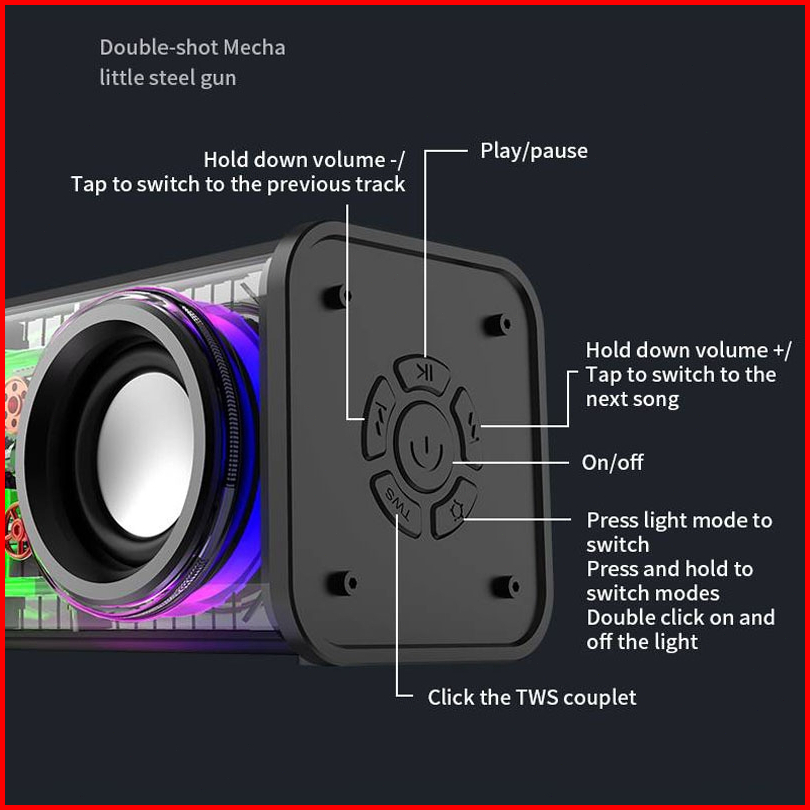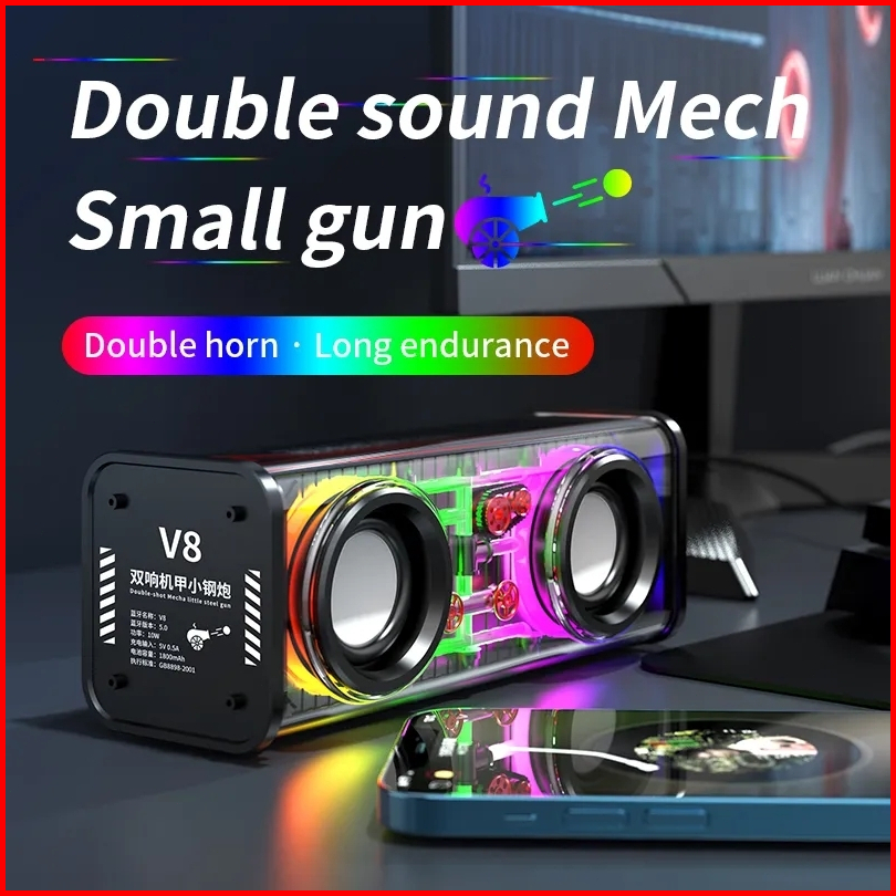 Unig Mecha Speaker Bluetooth Dual-horn Tws Transparent Mech Rgb Light Portable Subwoofer Tws Wireless Subwoofer Audio Sp