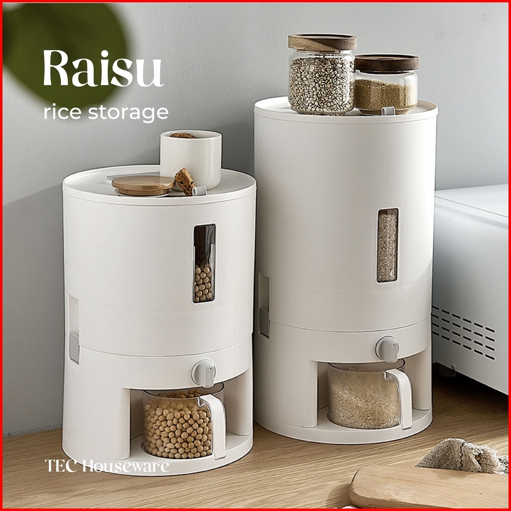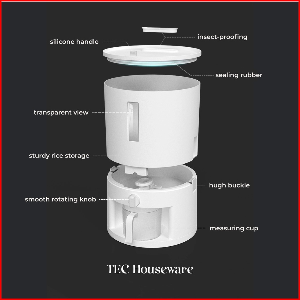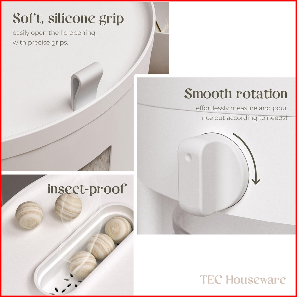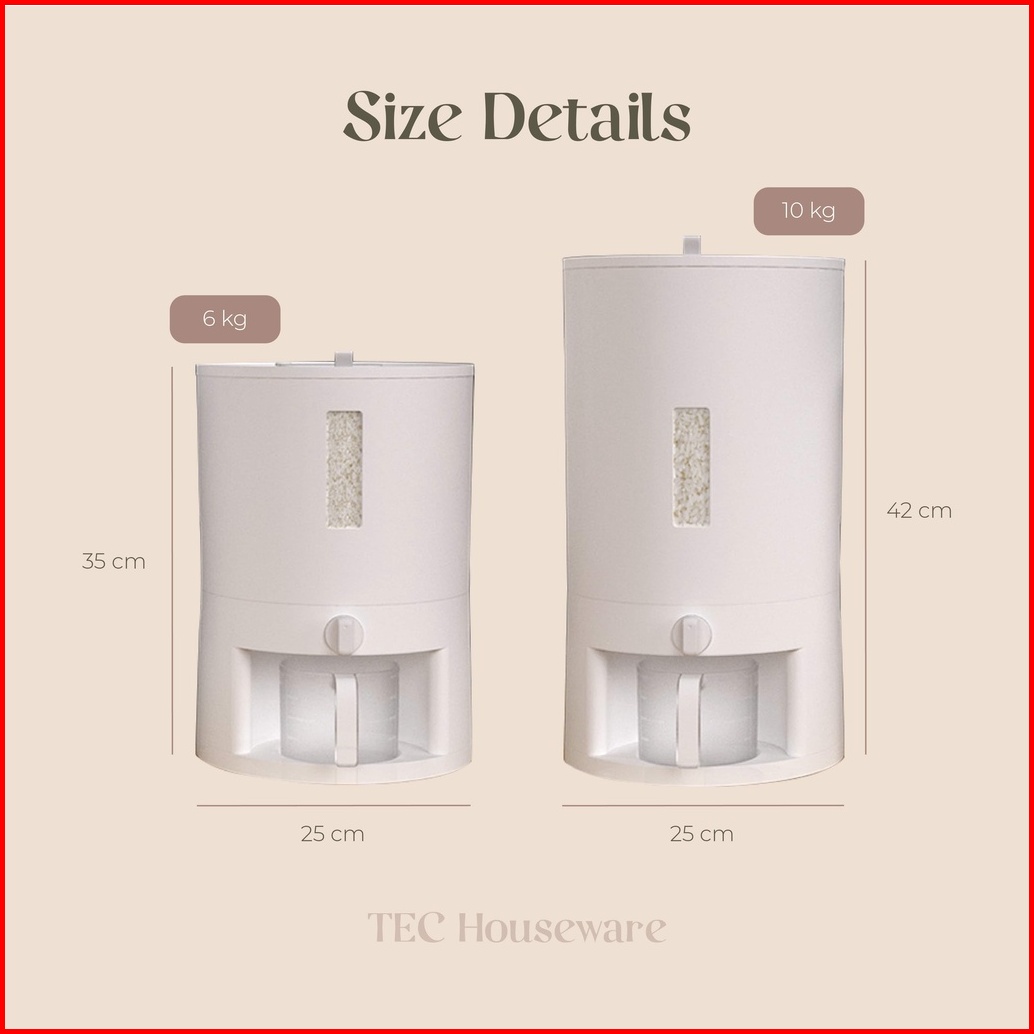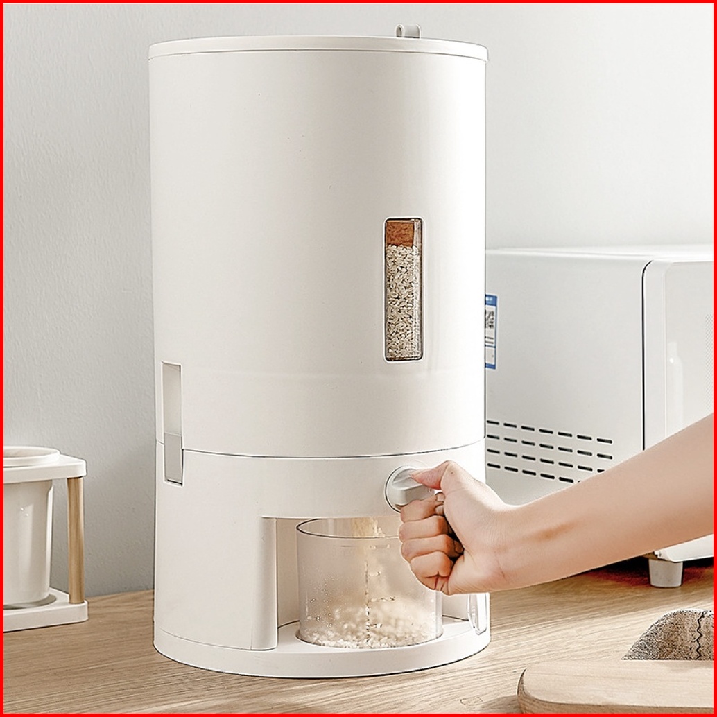 Tecraisu Rice Dispenser Kotak Penyimpanan Beras Biji-bijian Dispenser Beras Tempat Beras 6kg 10kg Kontainer Beras
