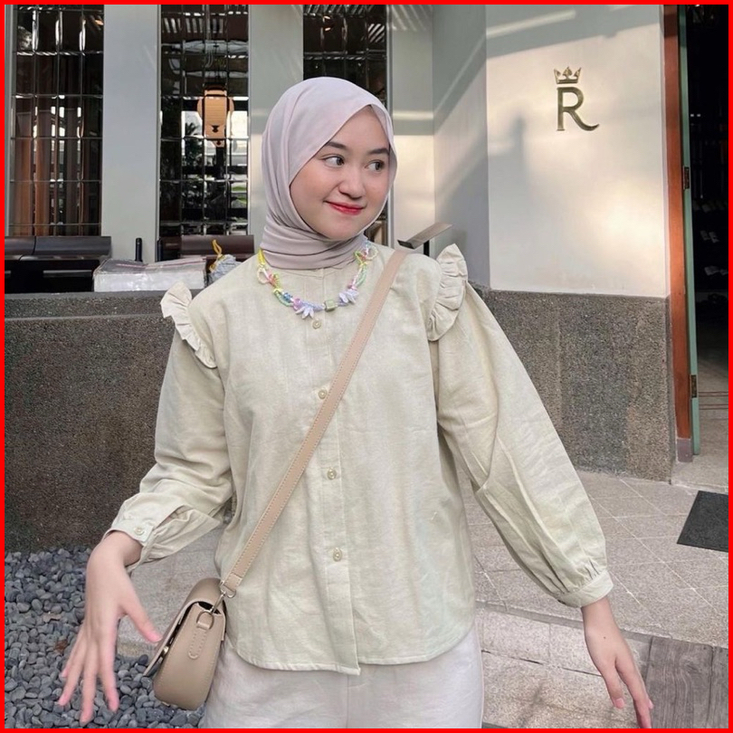 Yurim Blouse Ruffle - Atasan Wanita - Kemeja Linen Basic Lengan Panjang