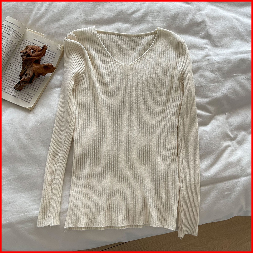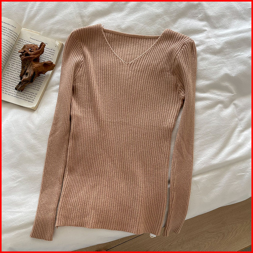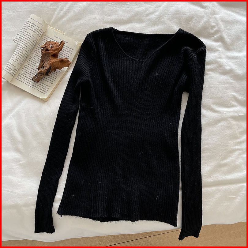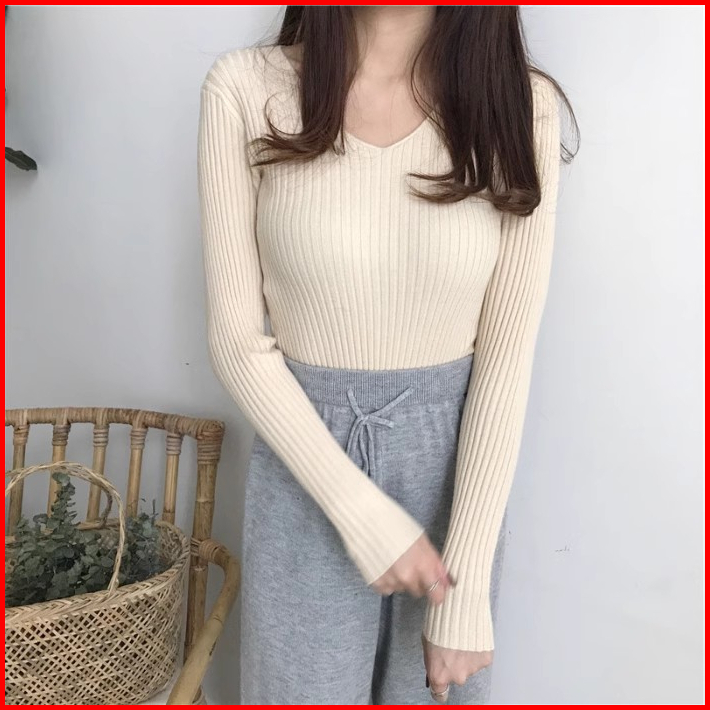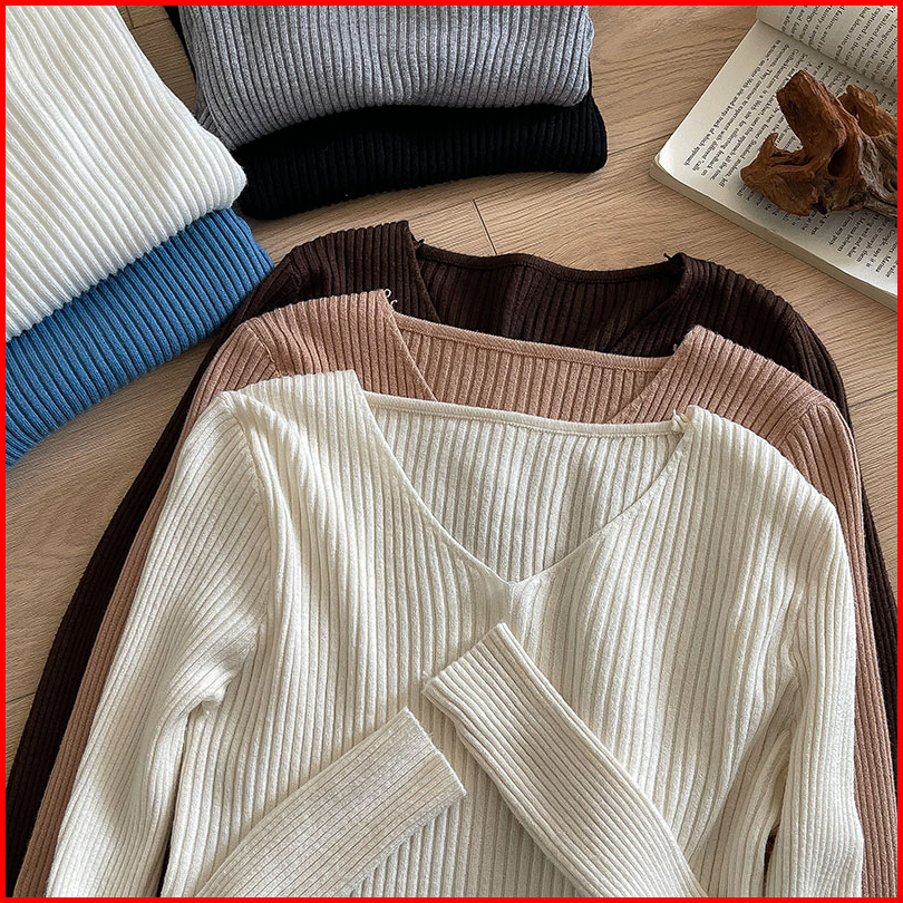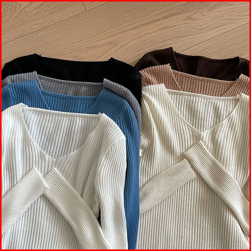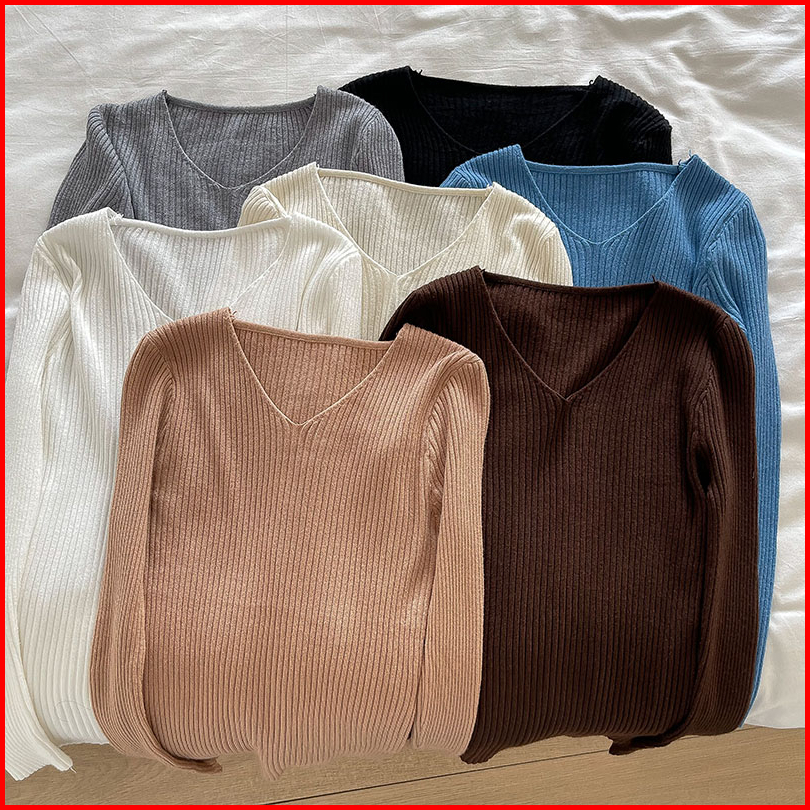 Kaos Rajut Wanita Import Lengan Panjang Fashion Korea Style Minimalis Warna Solid Atasan Knit T-shirt