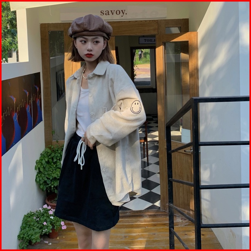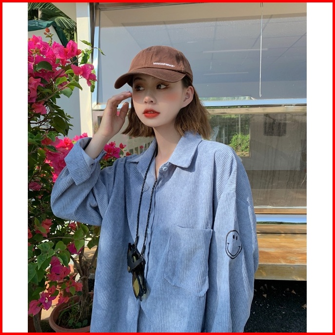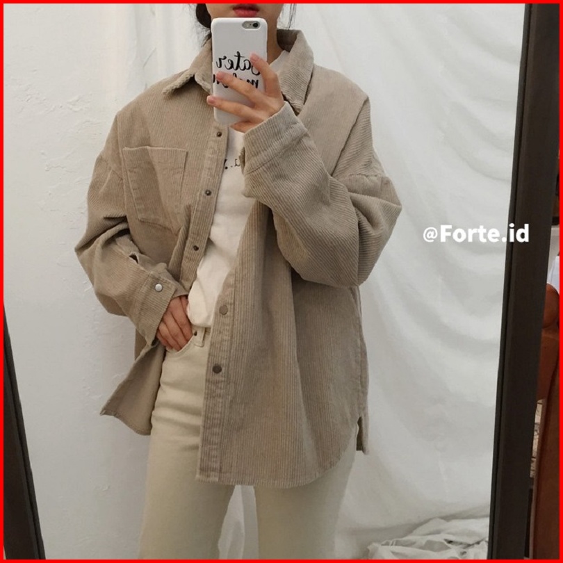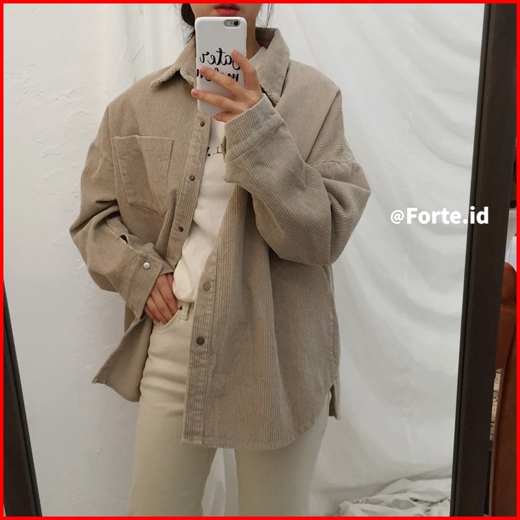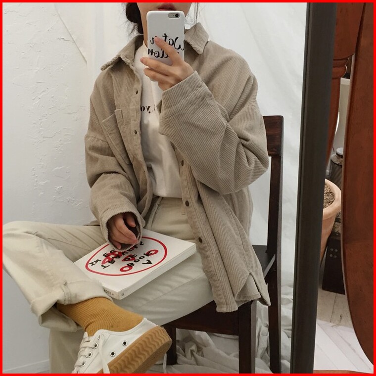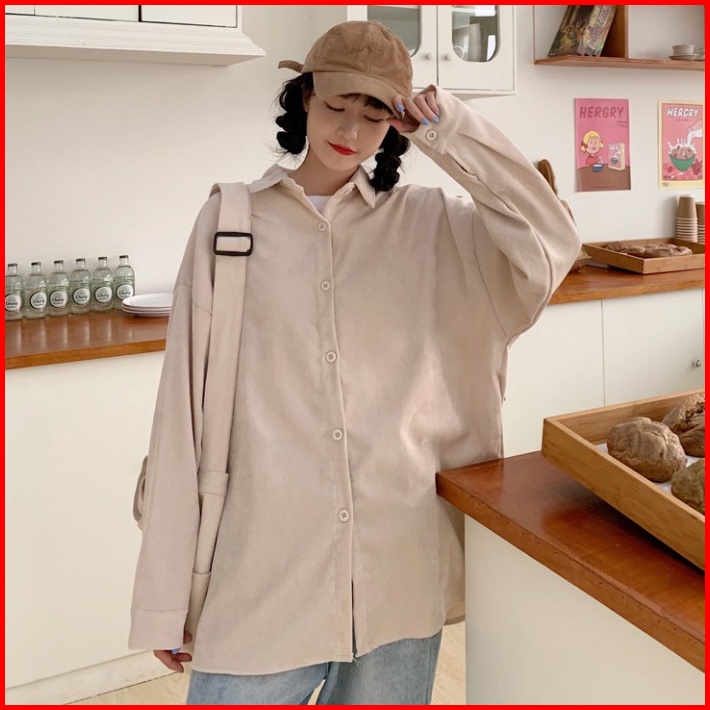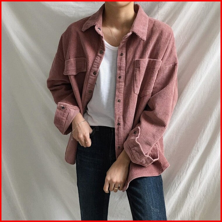 Ready Stok Kemeja Corduroy Lengan Panjang Wanita Atasan Wanita Oversize Kasual Pakaian Wanita Korea Style Corduroy Shirt