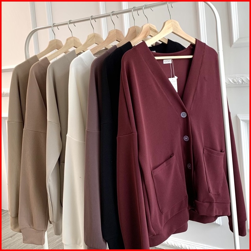 Msmo Reina Oversized Outer Cardigan Big Pocket Fit Panjang Outer Wanita Panjang