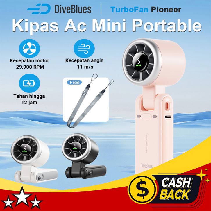 Diveblues Kipas Ac Mini Portable 4000Mah High-Speed 29900RPM 5 Gear Wind Dapat dilipat Digital Display Adjustable Led St
