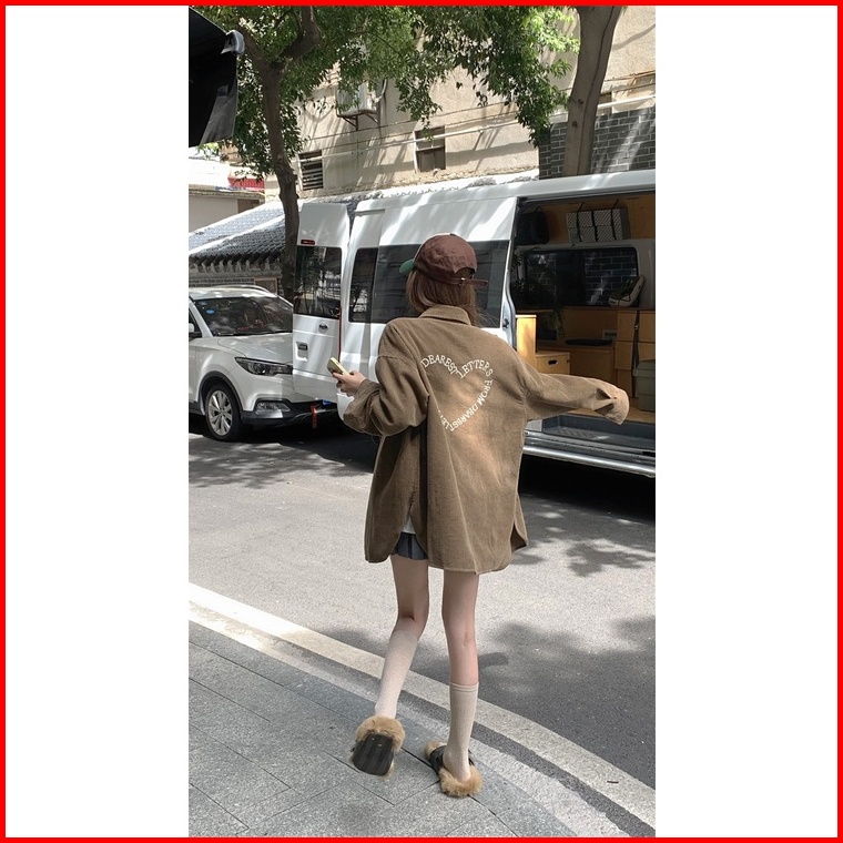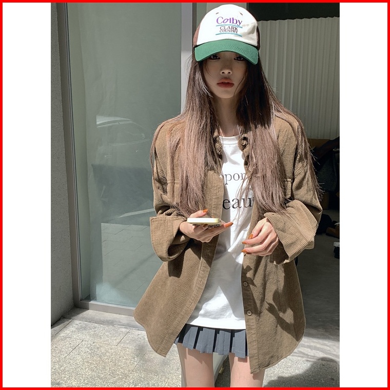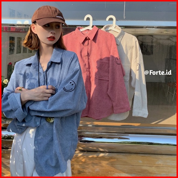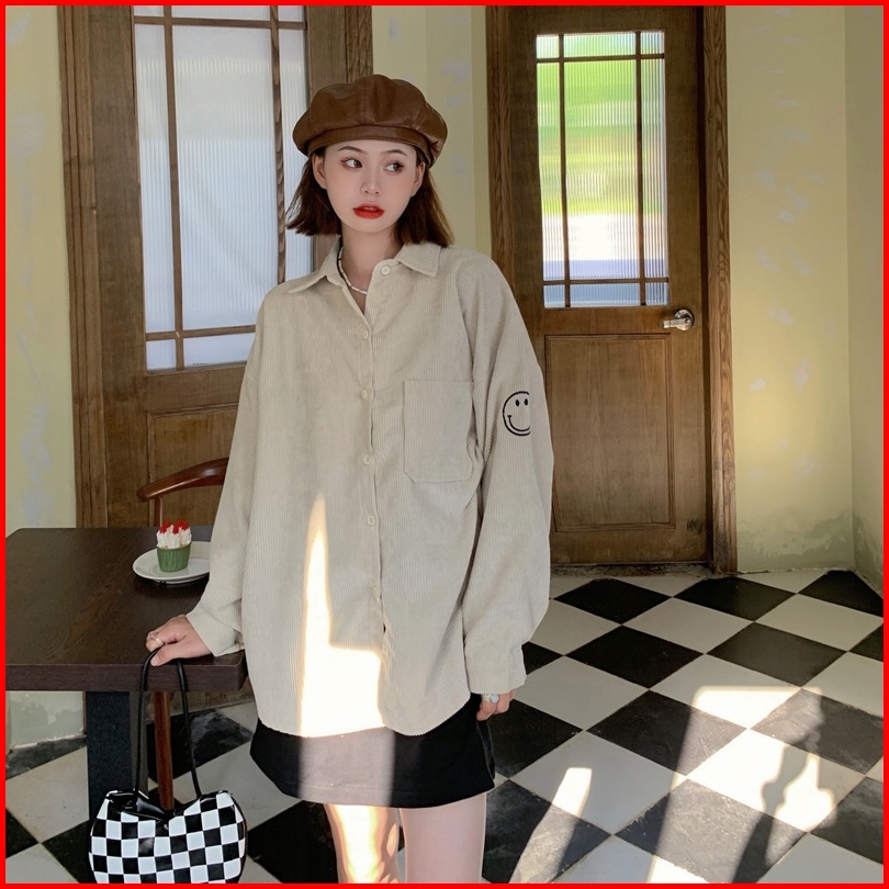 Kemeja Lengan Panjang Wanita Korean Style Blouse Corduroy Shirt Oversize Import Baju Atasan