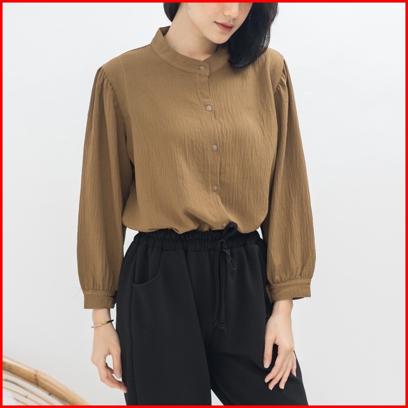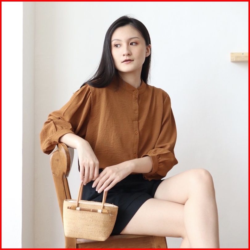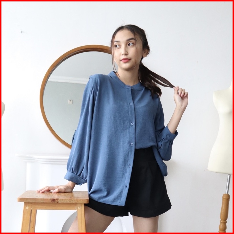 Msmo River Blouse Oneck Longsleeve Kemeja Lengan Panjang Kemeja Kantor Blouse Wanita