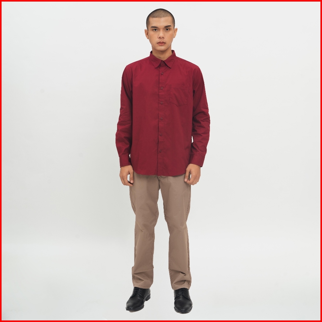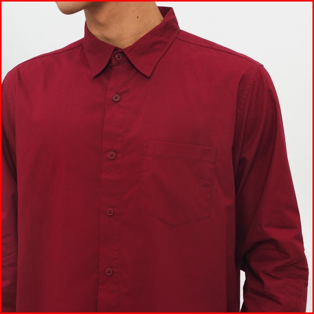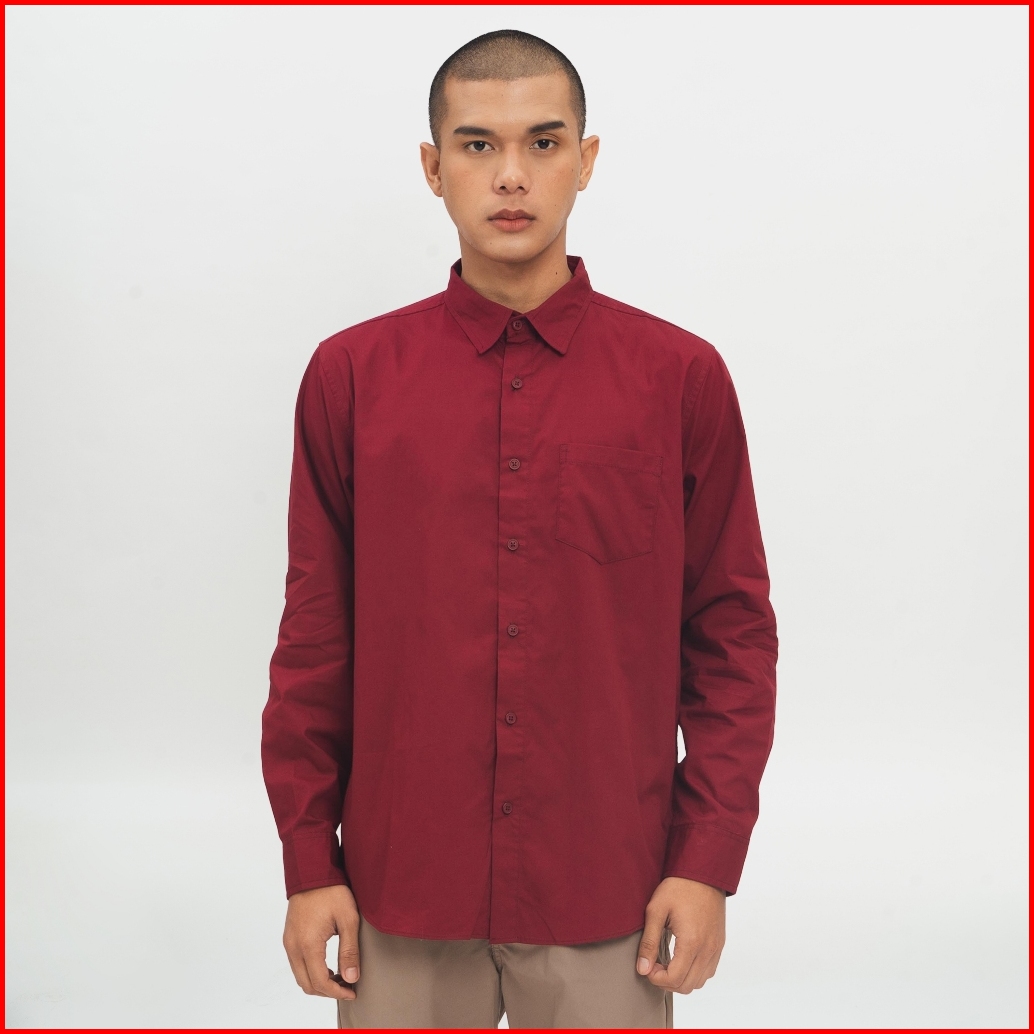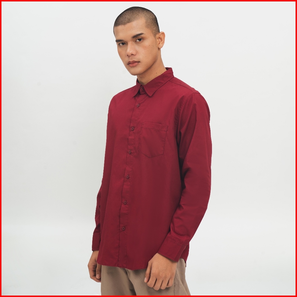 M231 Kemeja Pria Basic Polos Panjang Maroon 1468b