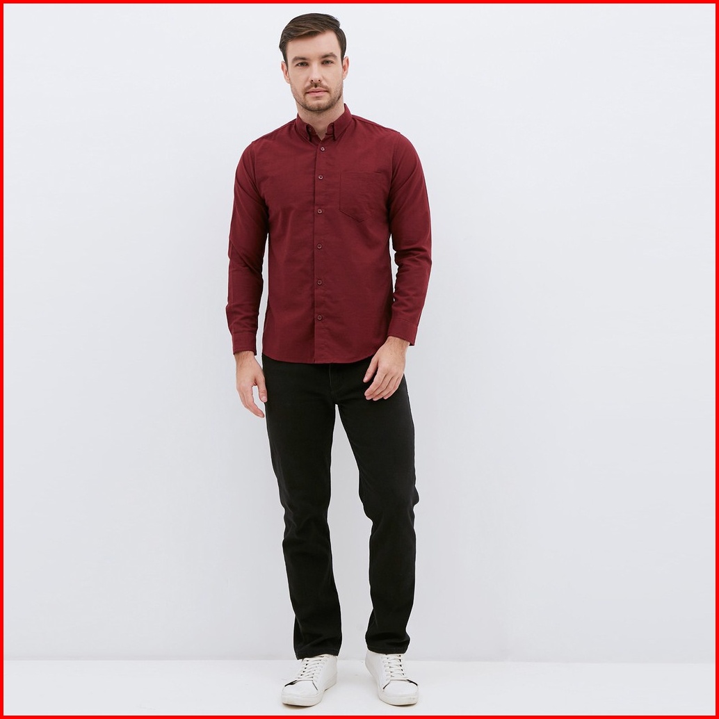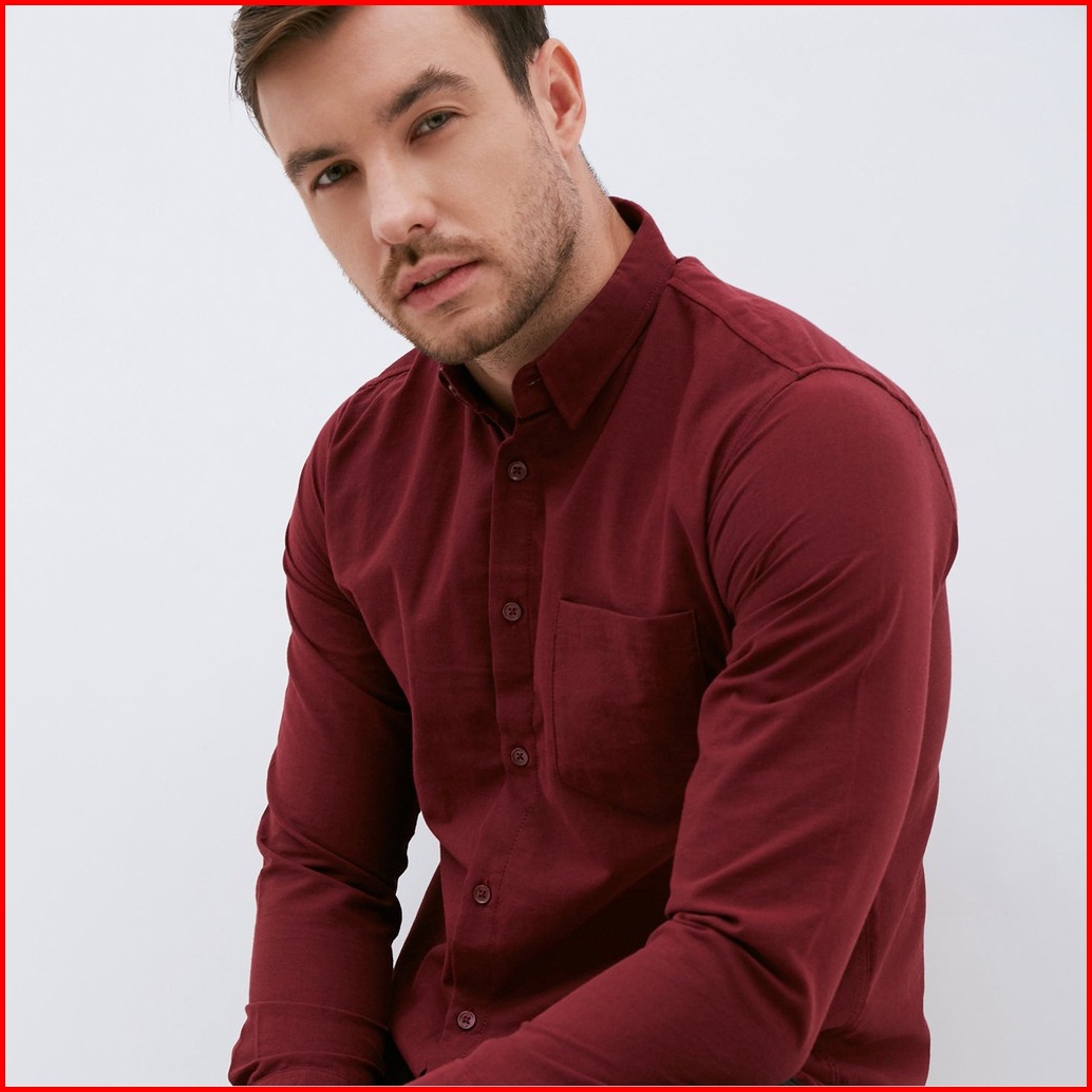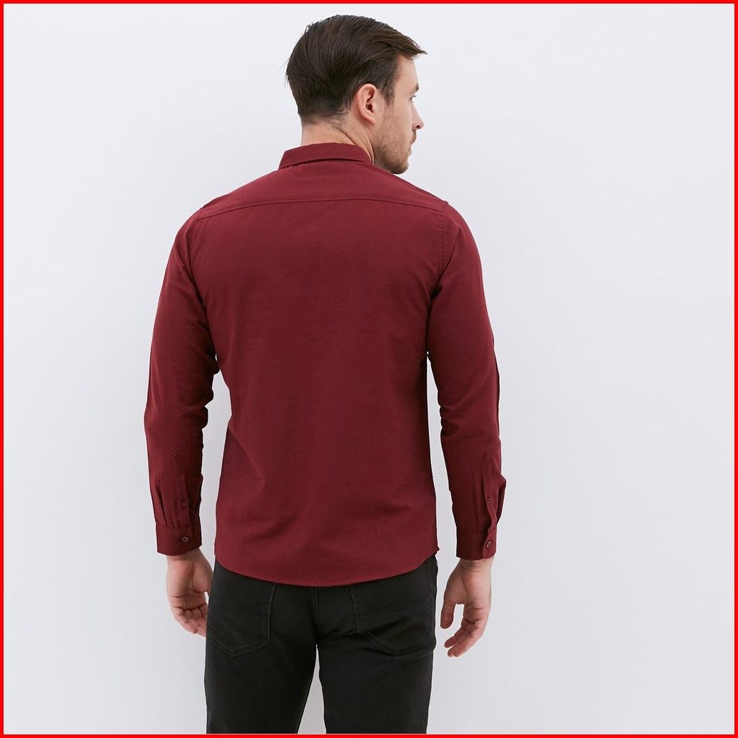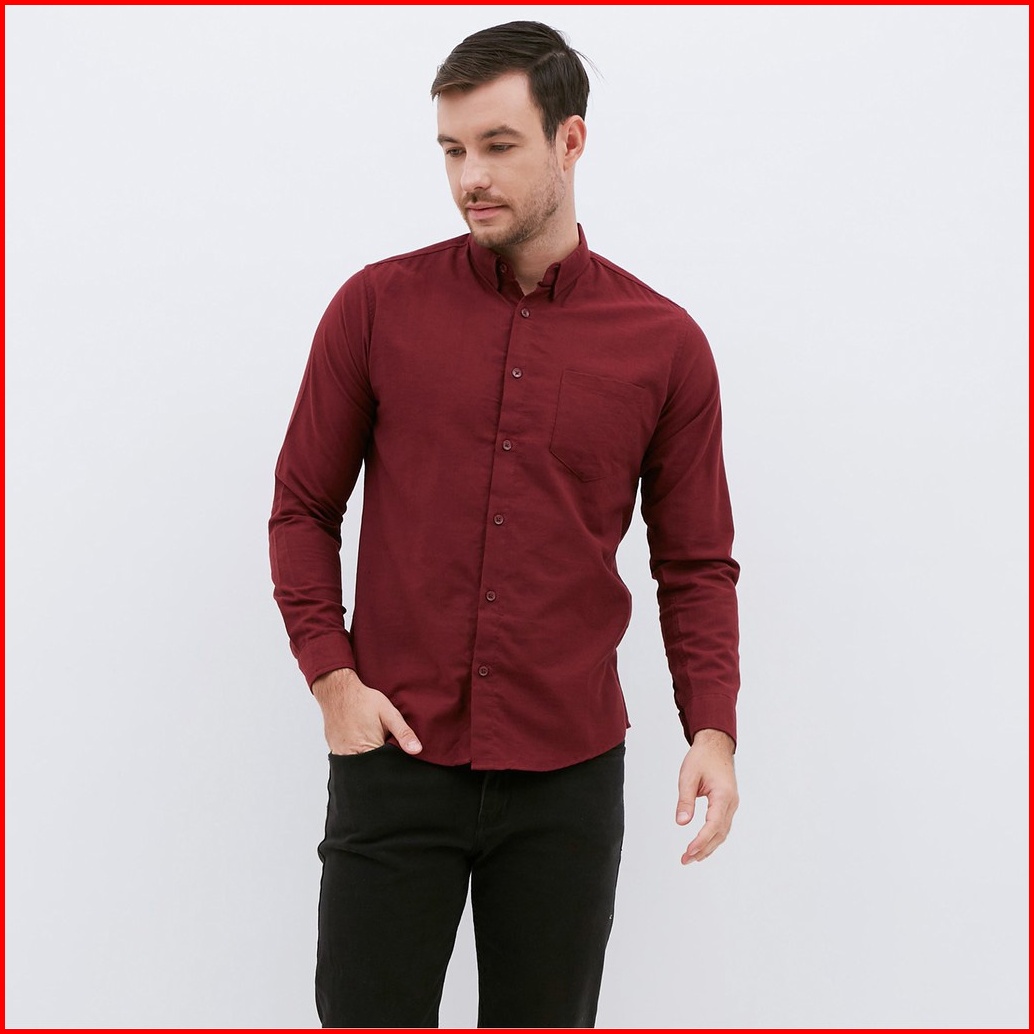 M231 Kemeja Pria Basic Polos Panjang Maroon 1468b
