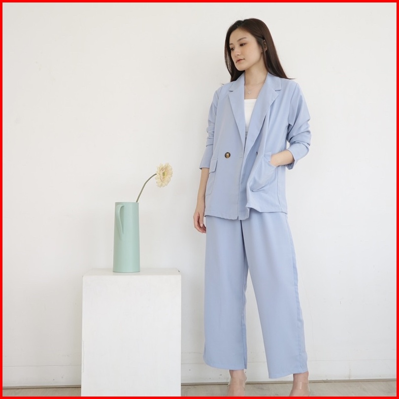 Msmo Set Long Blazer Culotte Set Wanita Setelan Wanita Blazer Wanita Set Blazer