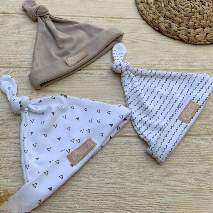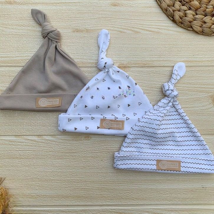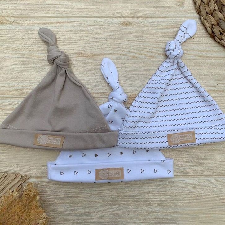 Bahan Katun TC - 3 PCS Kupluk Bayi Topi Bayi Baru lahir Usia 0-3 Bulan Serian Cream