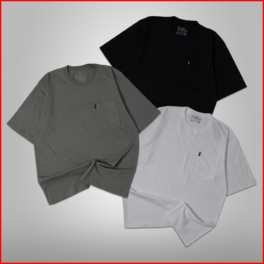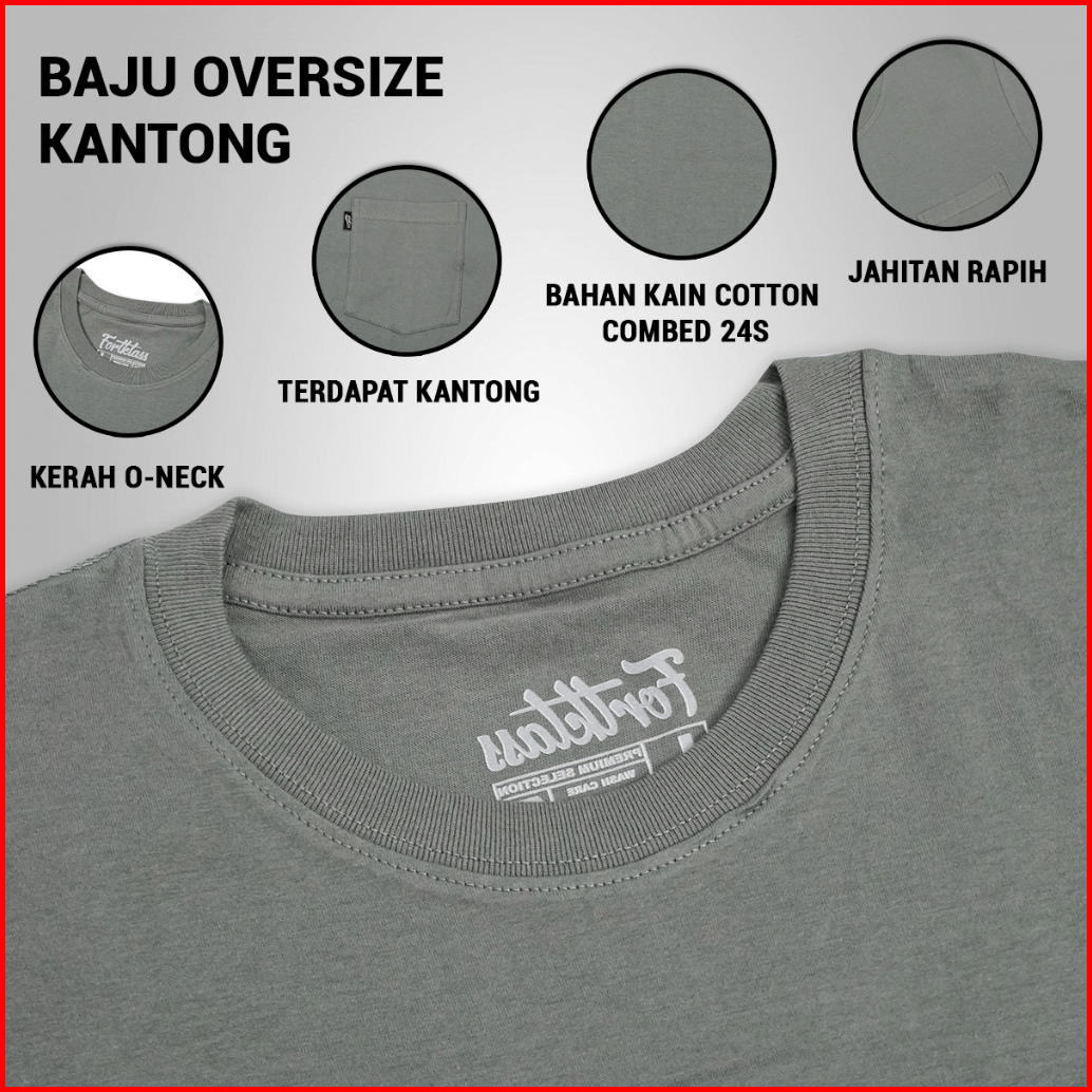 Fortklass Kaos Oversize Kantong Kaos T-shirt 24s Cowok Premium Katun Combed 24s Unisex