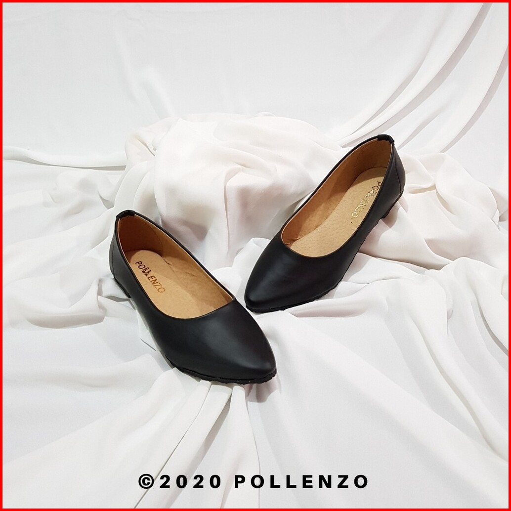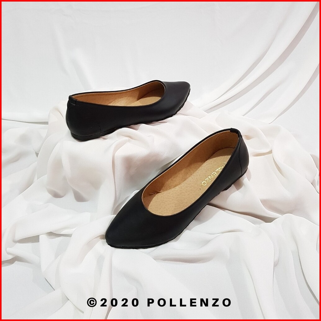 Pollenzo - Teta Flatshoes Hitam Polos Sol Karet Jy-006-b