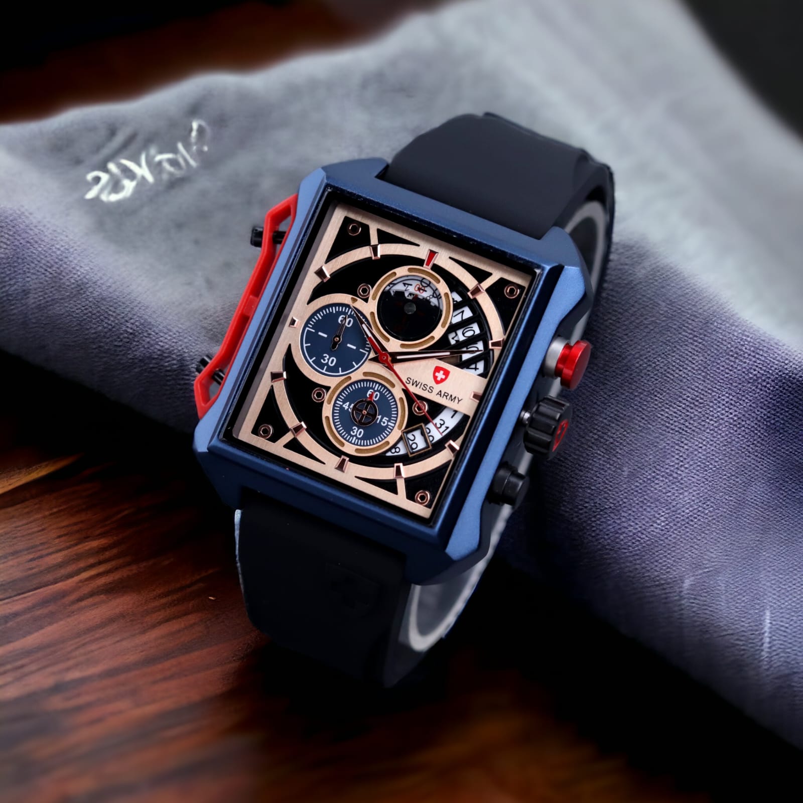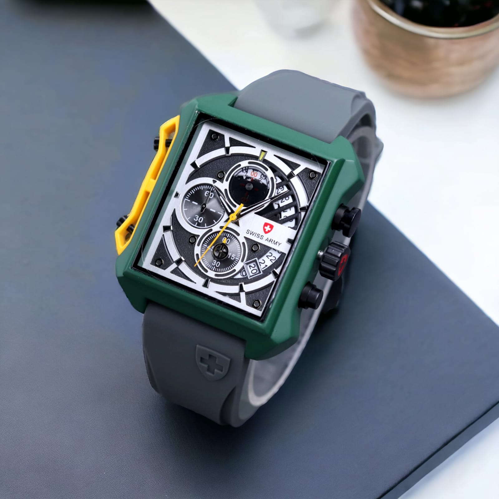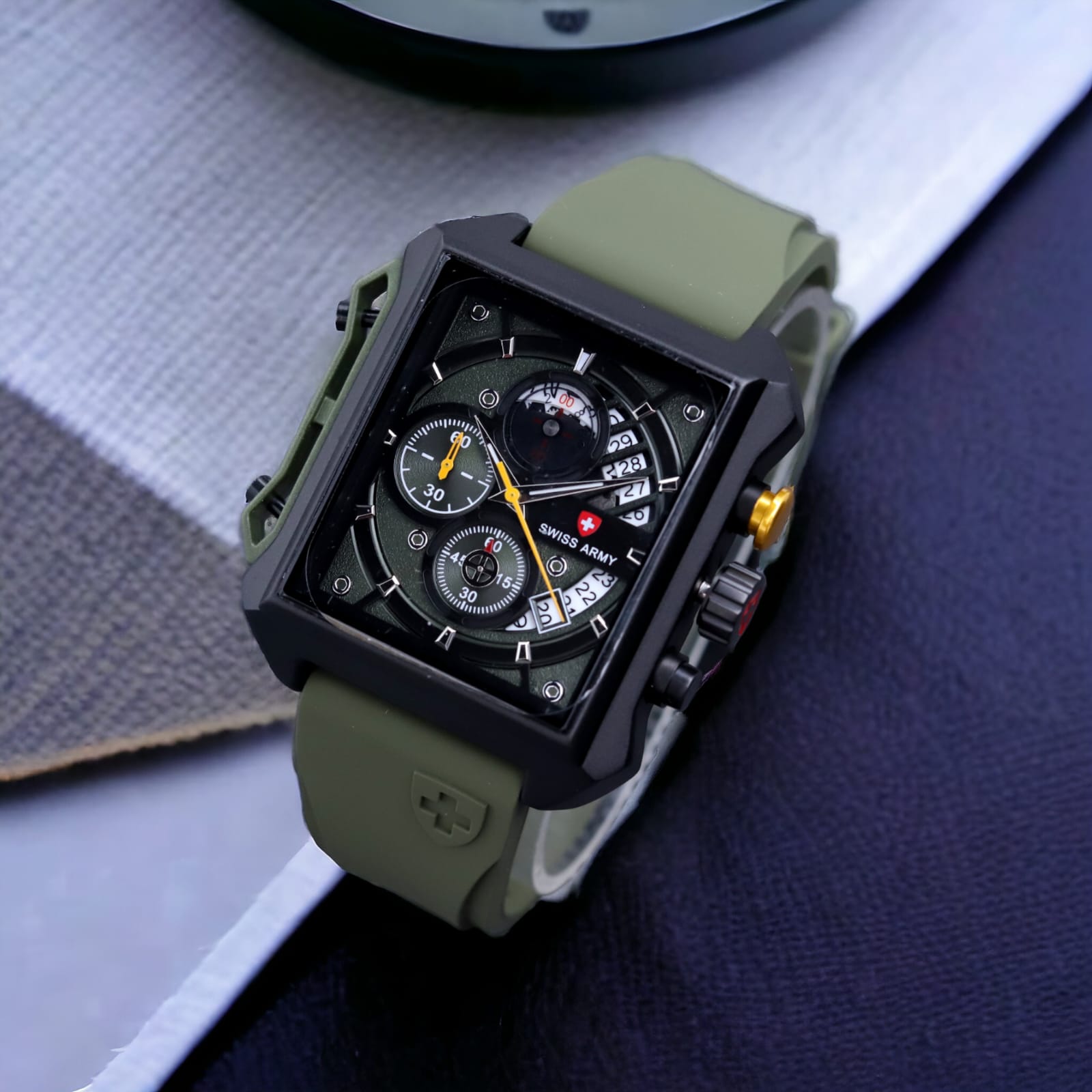 Jam tangan pria SW39161 Army Strap Karet Chronograph aktif Tahan air