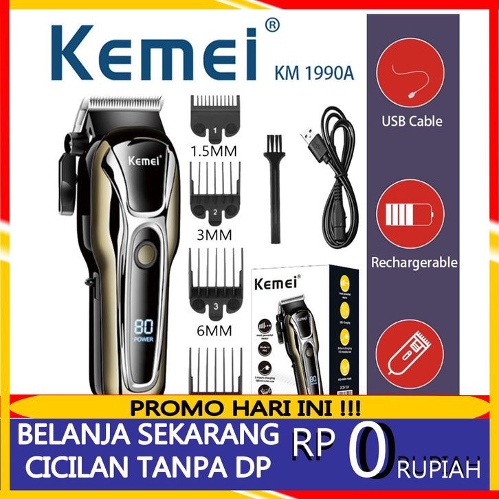 DIKIRIM KEMEI ALAT CUKUR RAMBUT ELEKTRIK MESIN CUKUR RAMBUT TANPA KABEL TURBO HAIR CLIPPER KM-PG1990A