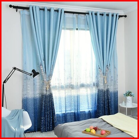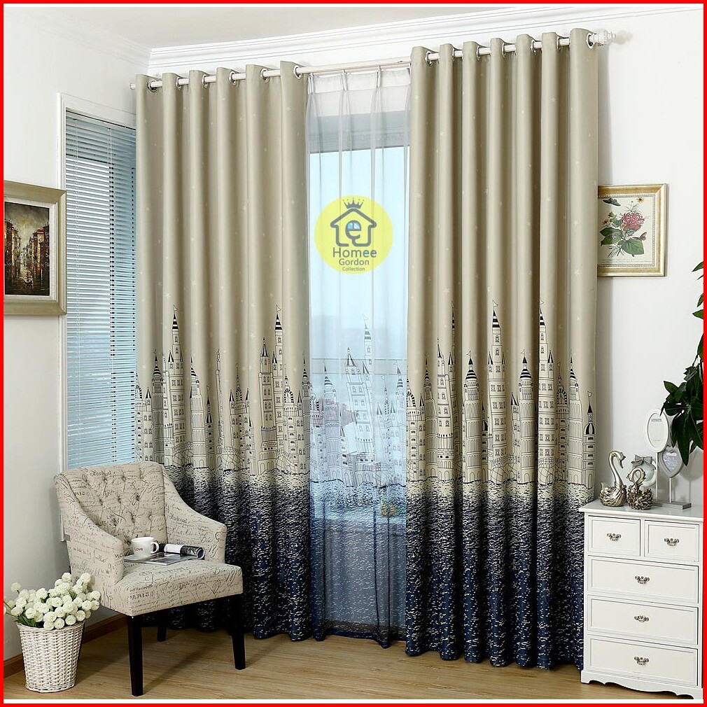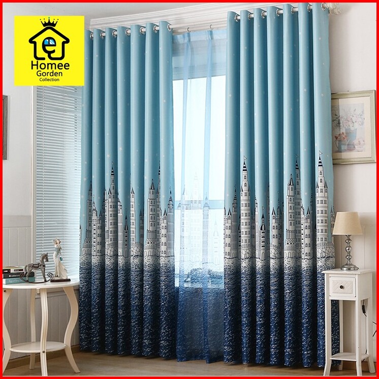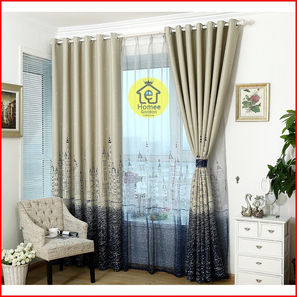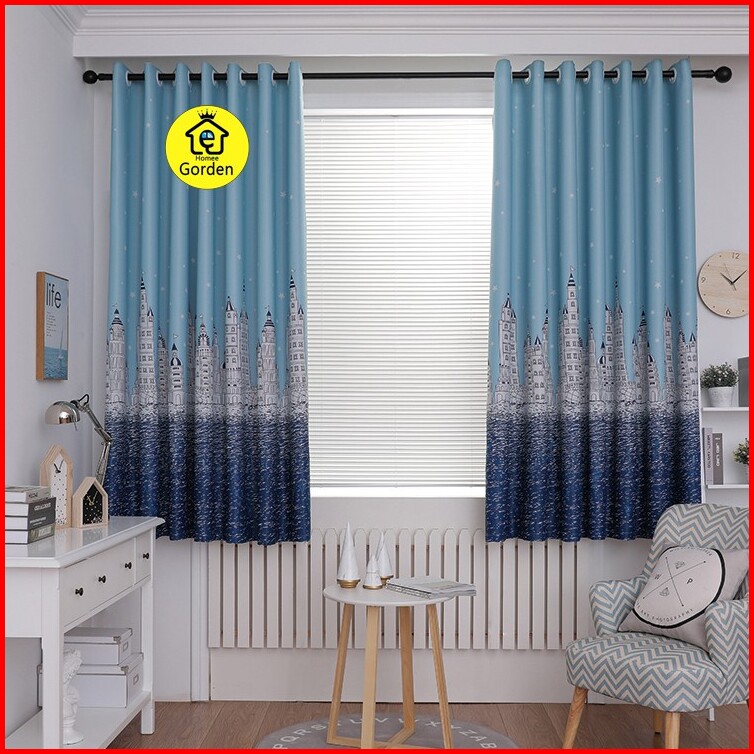 Gorden Anak Karakter Blackout Tirai Hordeng Jendela Gordyn Blackout Murah Biru Cream