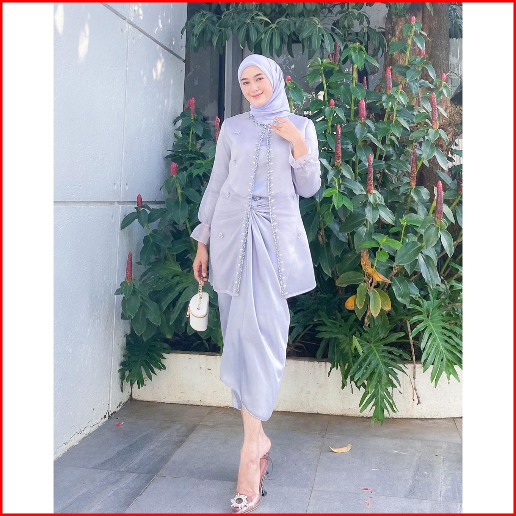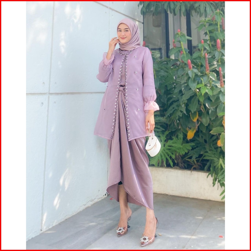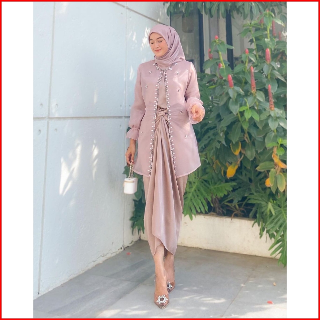 One Set Wanita Kekinian Outer Organza Premium Setelan Kondangan Rok Lilit Outfit Kondangan Kekinian Baju Setelan Wanita