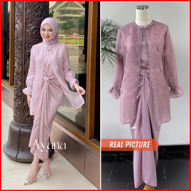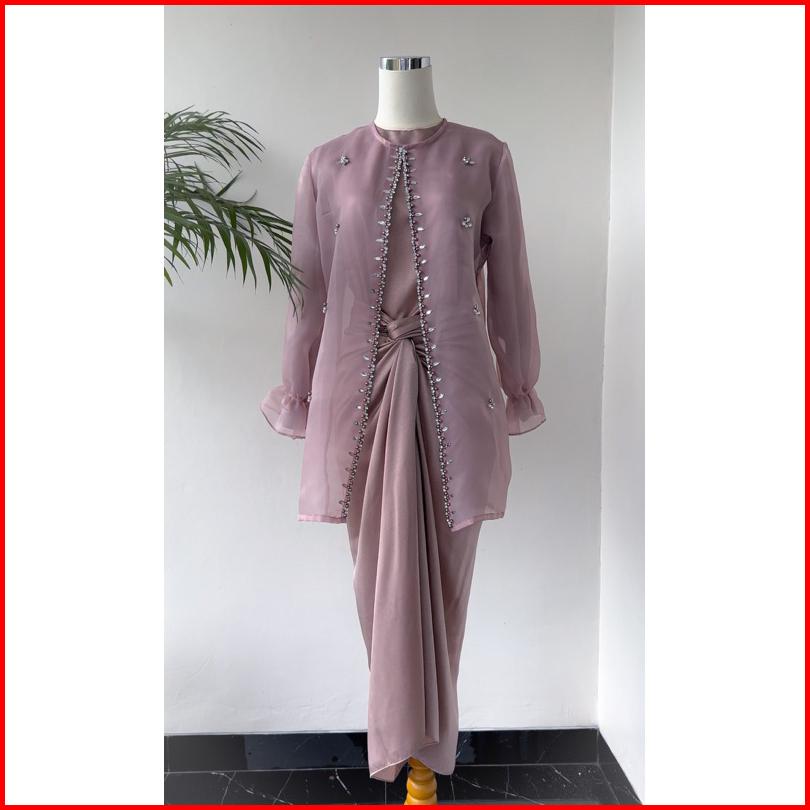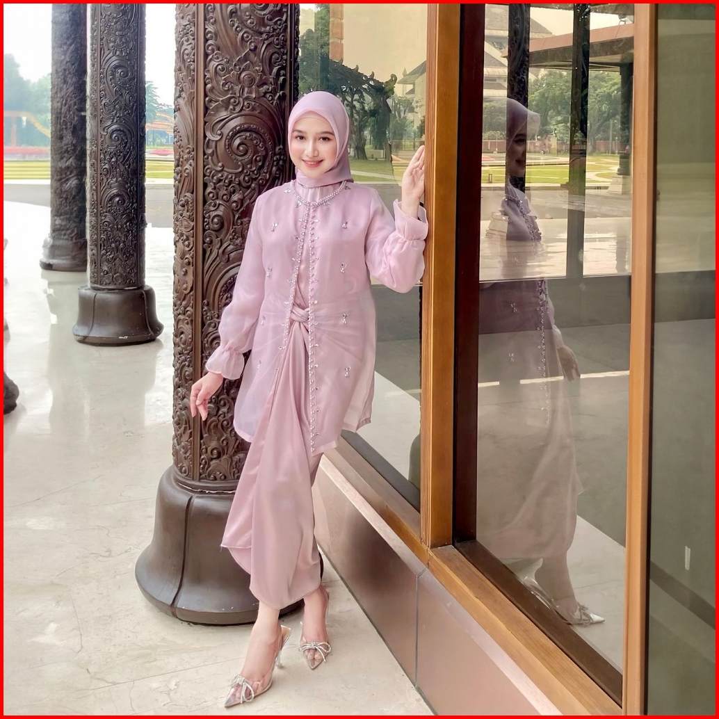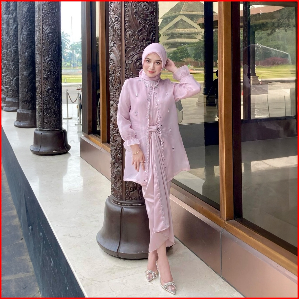 One Set Wanita Kekinian Outer Organza Premium Setelan Kondangan Rok Lilit Outfit Kondangan Kekinian Baju Setelan Wanita