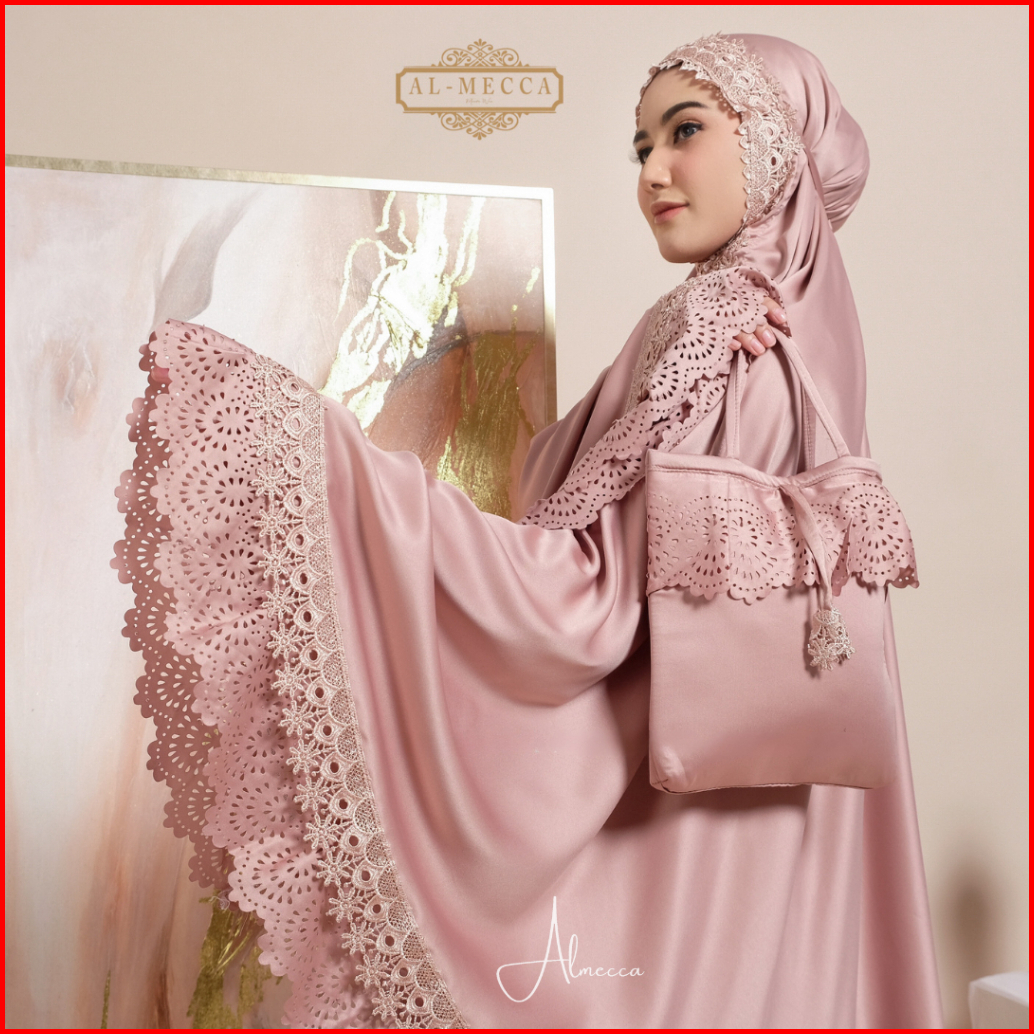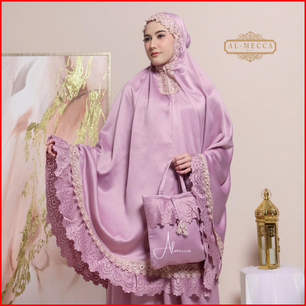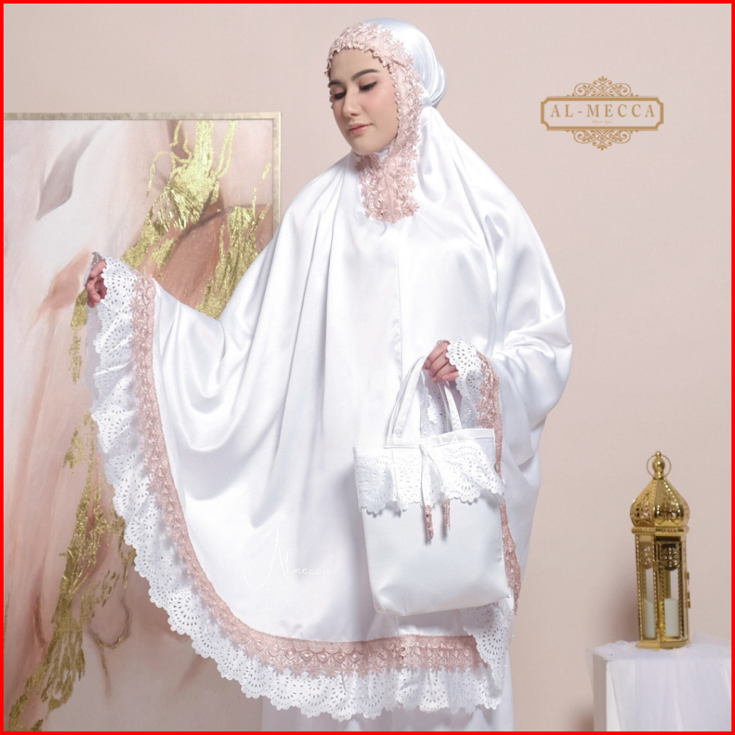 Almecca - Mukena Dewasa Daily Al-mecca Rempel Lasercut Renda Mewah Jumbo Traveling Cantik