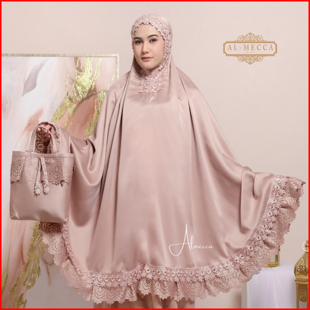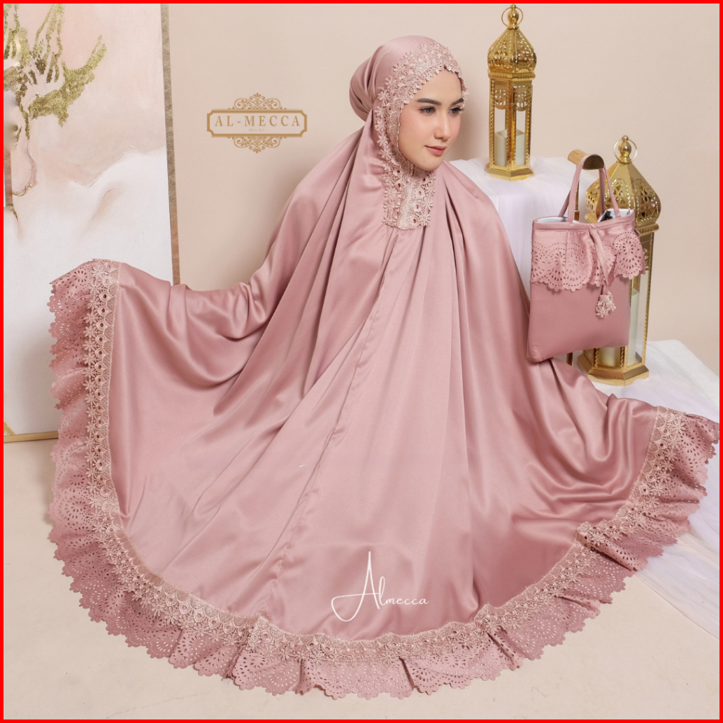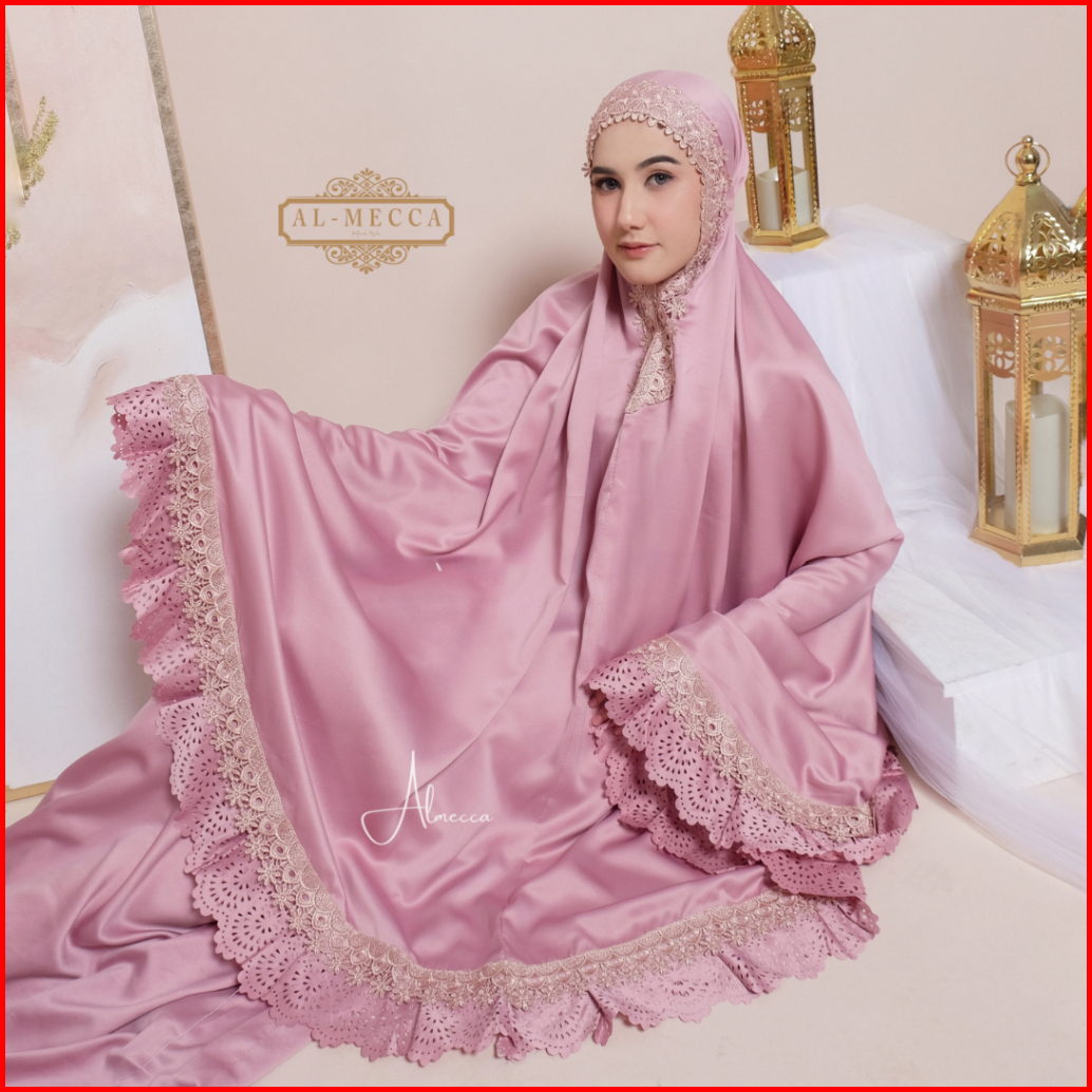Almecca - Mukena Dewasa Daily Al-mecca Rempel Lasercut Renda Mewah Jumbo Traveling Cantik