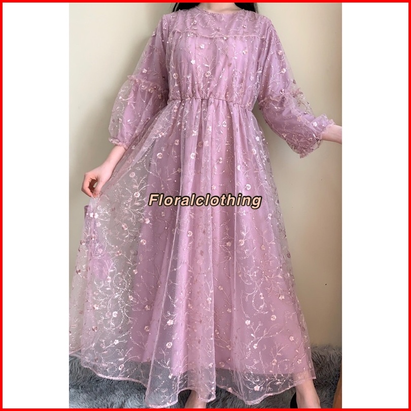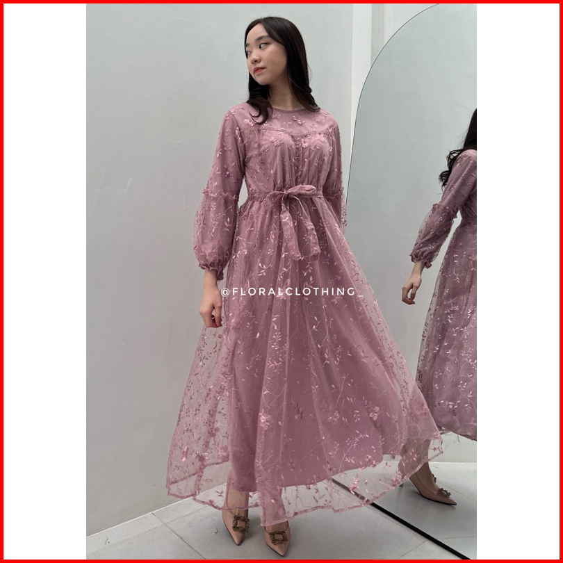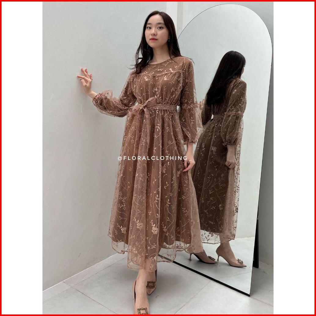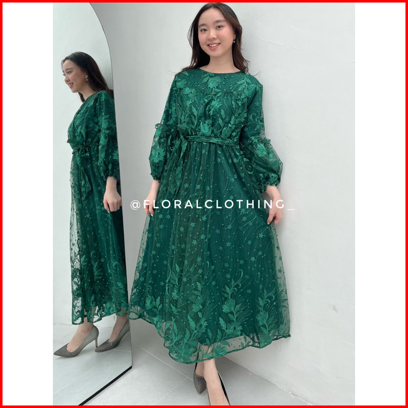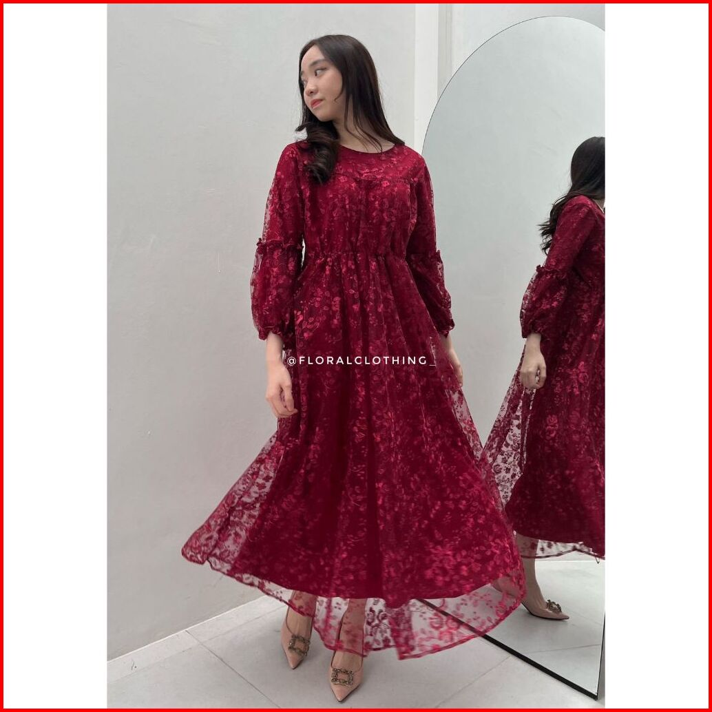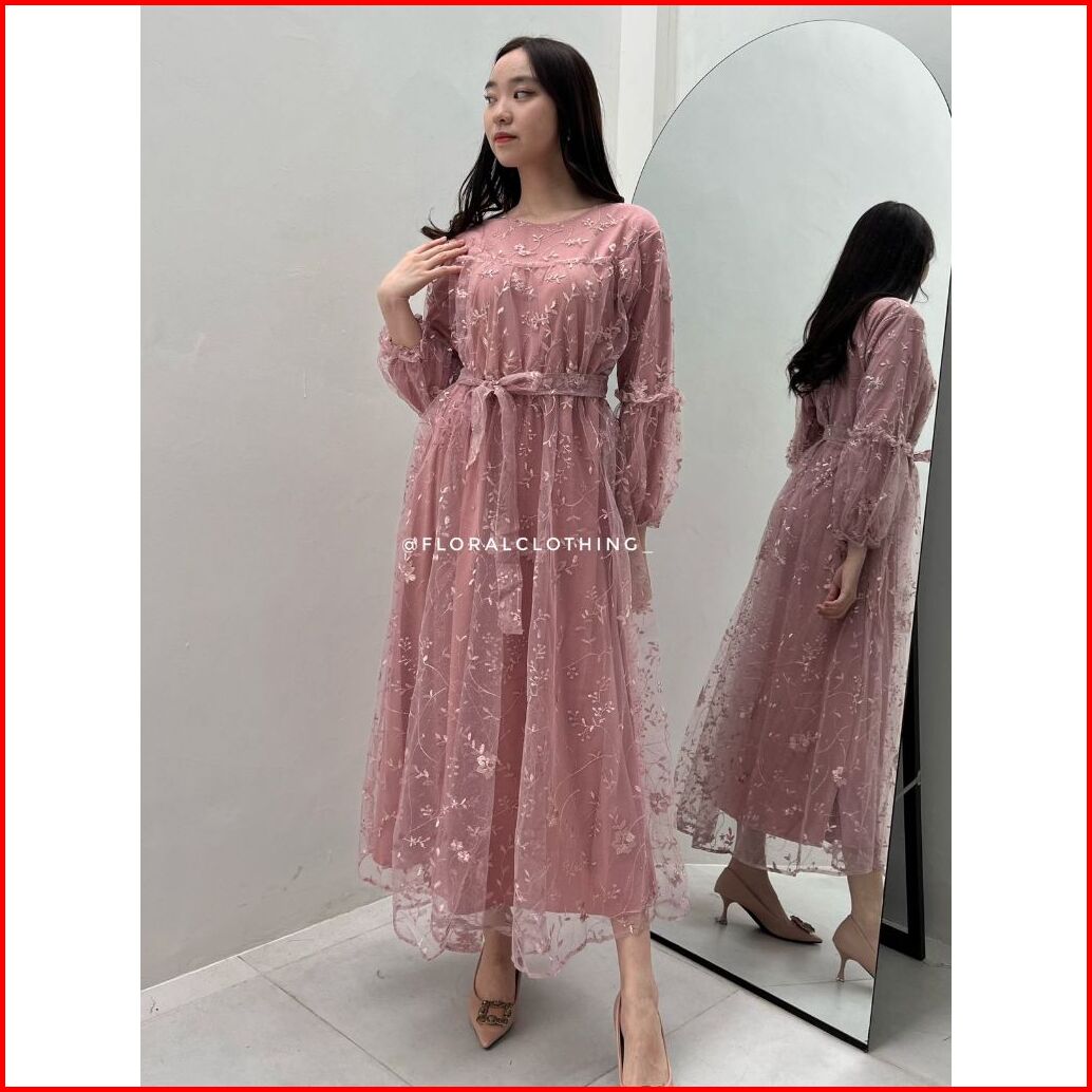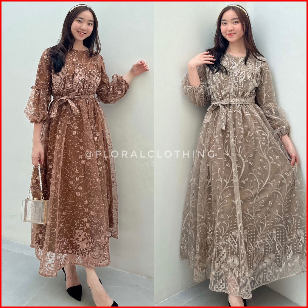 Dress Kondangan Muslim Mewah Bahan Brokat Premium Korean Look Free Masker Tali F110