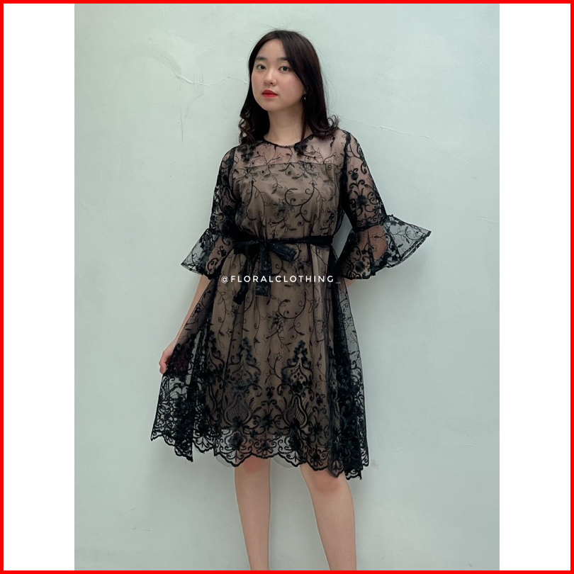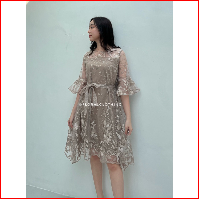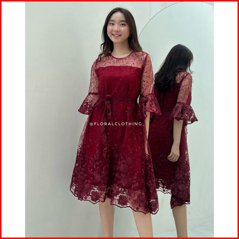 Restock Dress Kondangan Full Brokat Free Masker Tali Pinggang F85