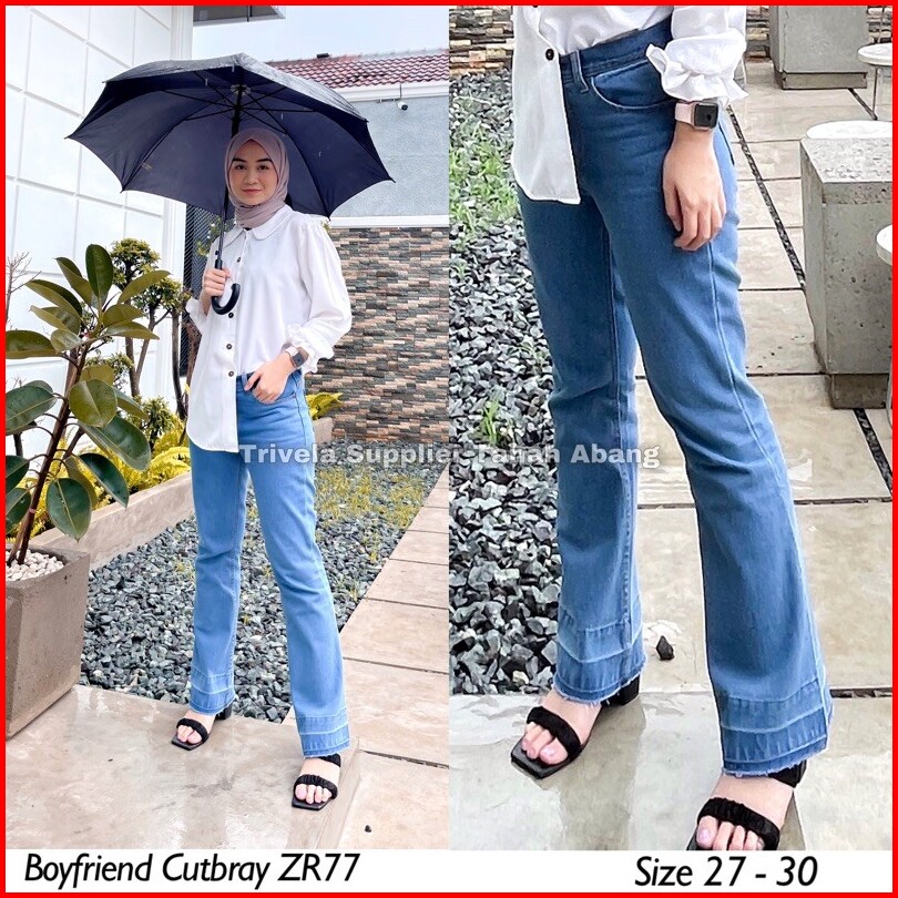 Boyfriend Cutbray Jeans Tebal Zr 77