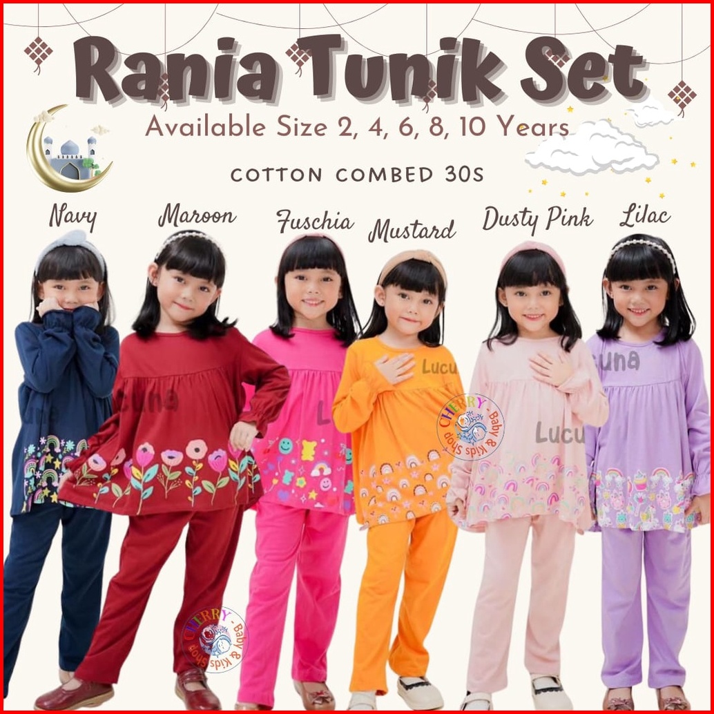 Lucuna Tunik Rania 2-10 Tahun Smilee Setelan Panjang Muslim Tunic Raya Setelan Panjang Lebaran Anak Perempuan Cbks P100