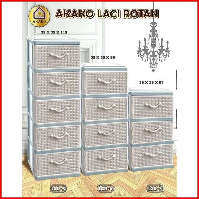 Akako Lemari Plastik Laci 3 4 5 Susun Lsf Warna Warni Fancy Motif Rotan