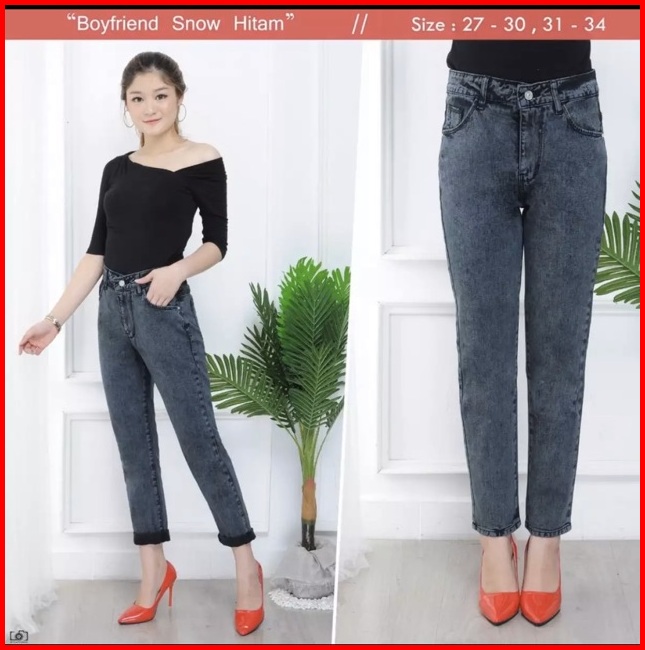Tr - Plain Boyfriend Boyfriend Snow 27-40 Celana Jeans Boyfriend Boyfriend Hitam Plainbf Celana Boyfriend Jeans Wanita