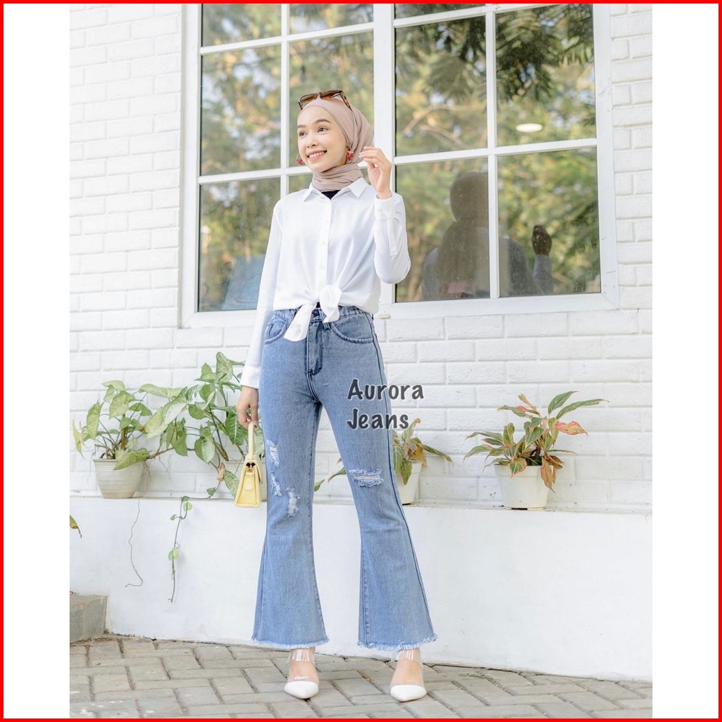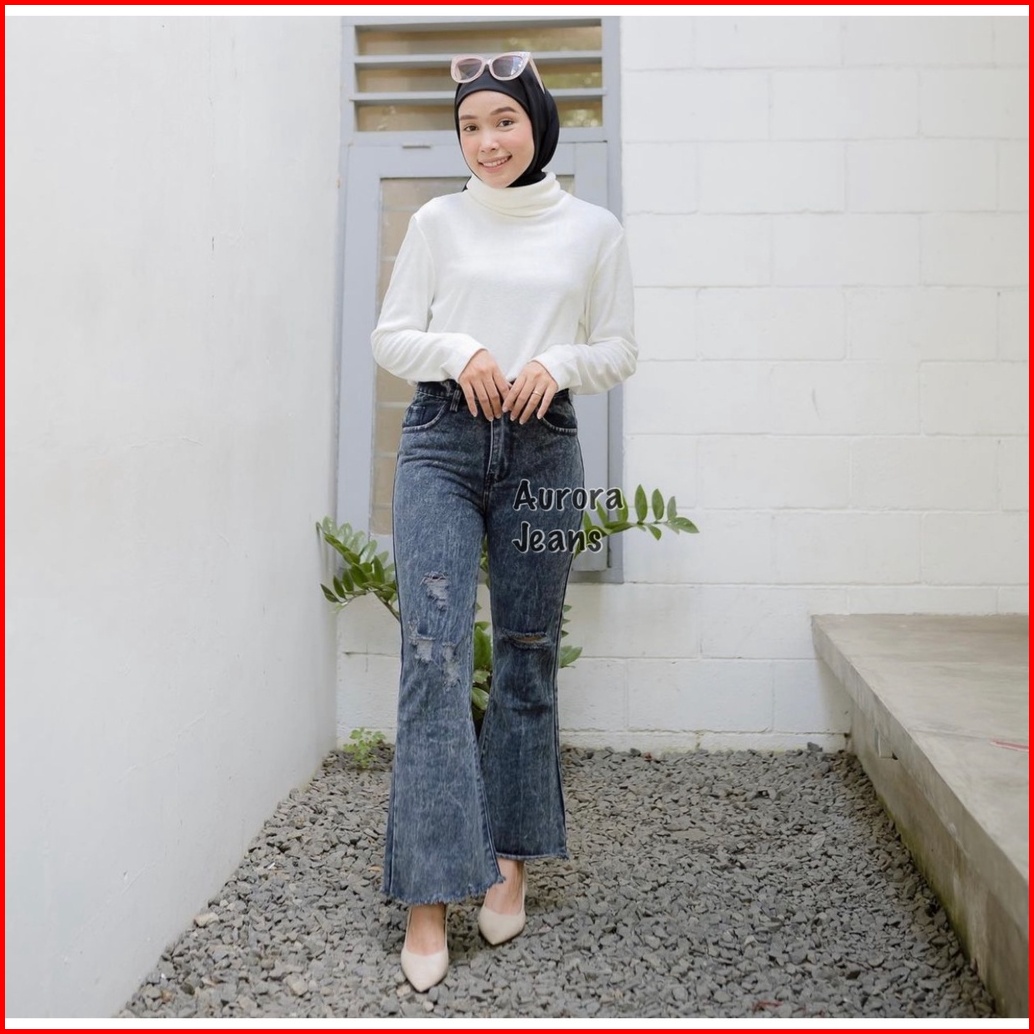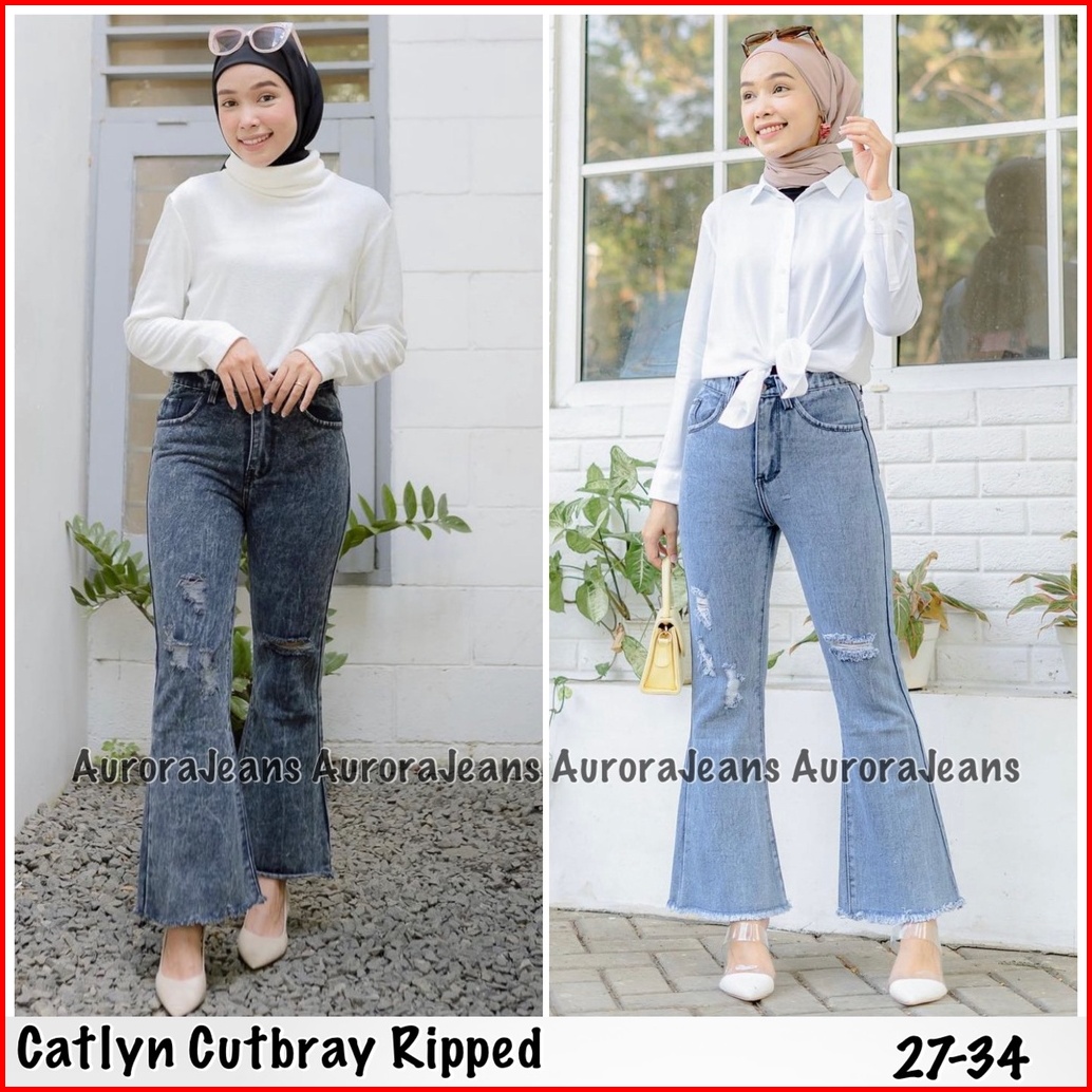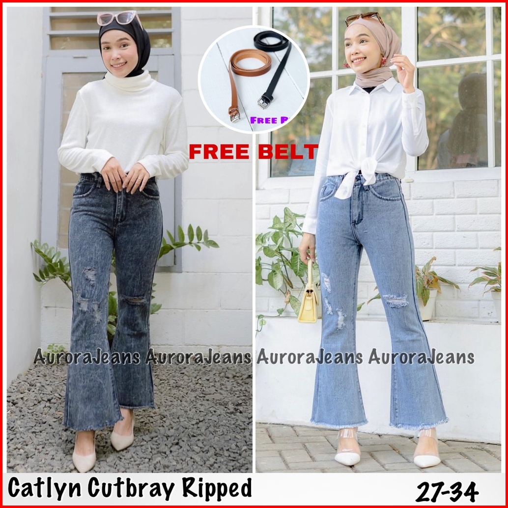 Trivela Free Belt - Celana Jeans Catlyn Cutbray Wanita Sobek Celana Jeans Cutbray Wanita 27-34