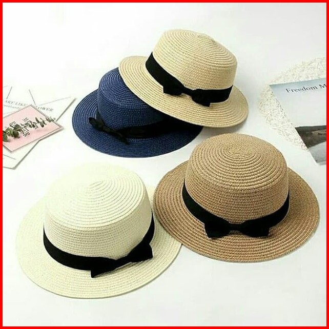 Topi Boatler Boater Pantai Wanita Fork Pie Hat Import Papper Pita Bulat Pita