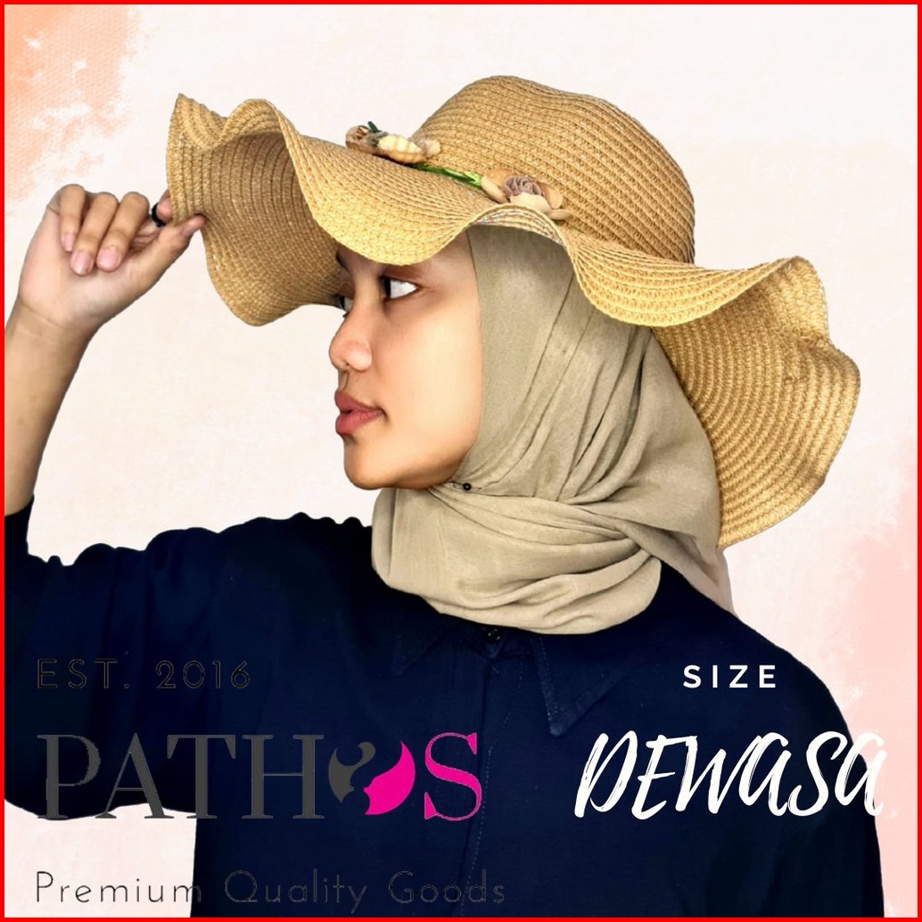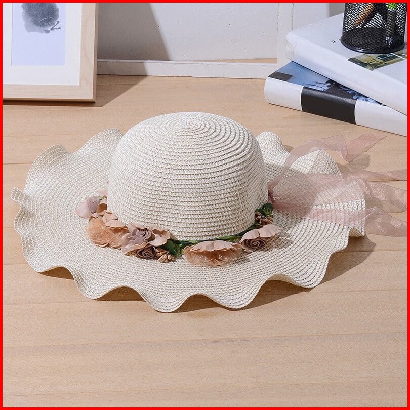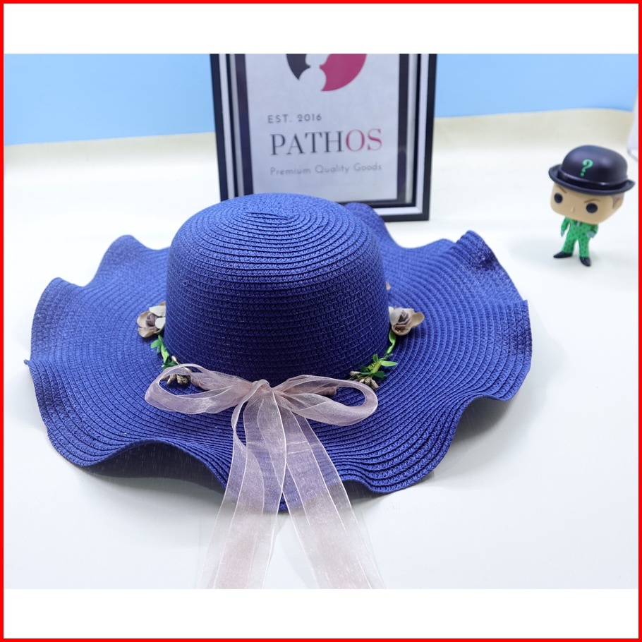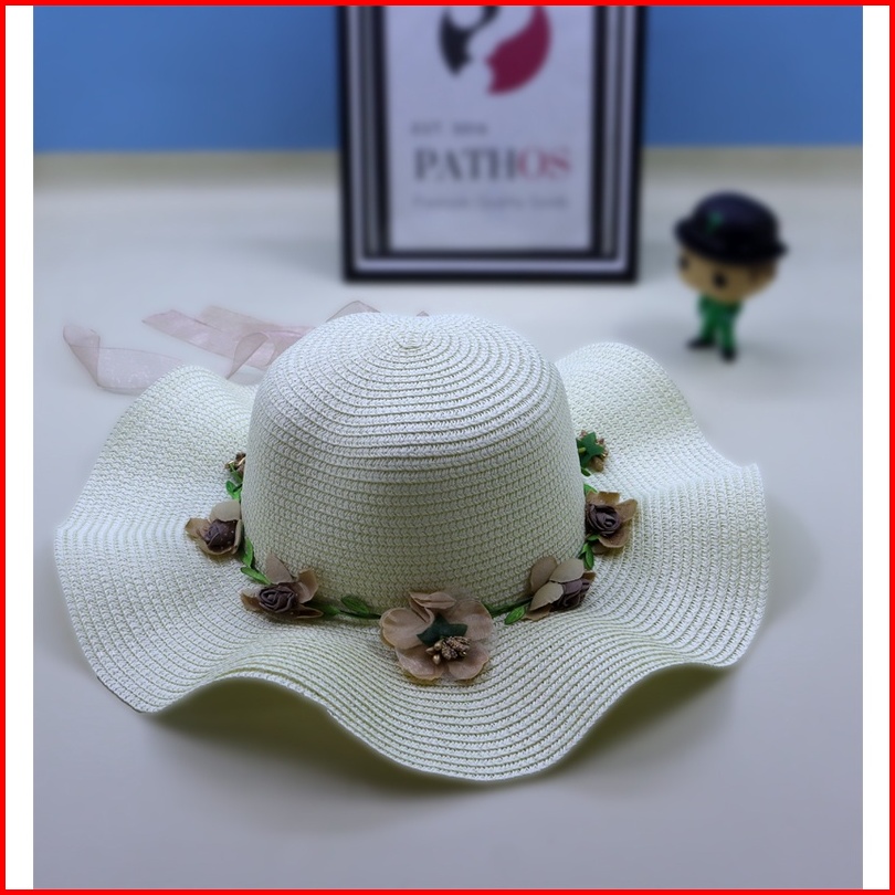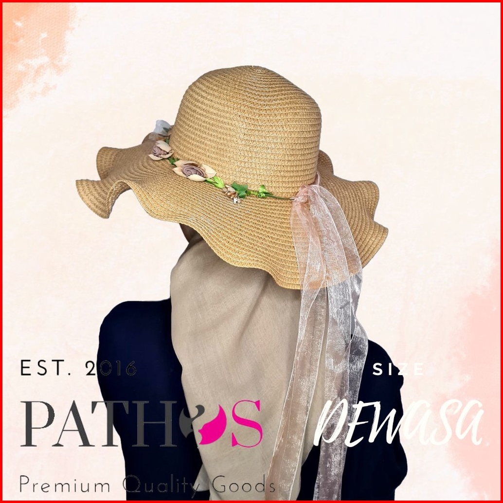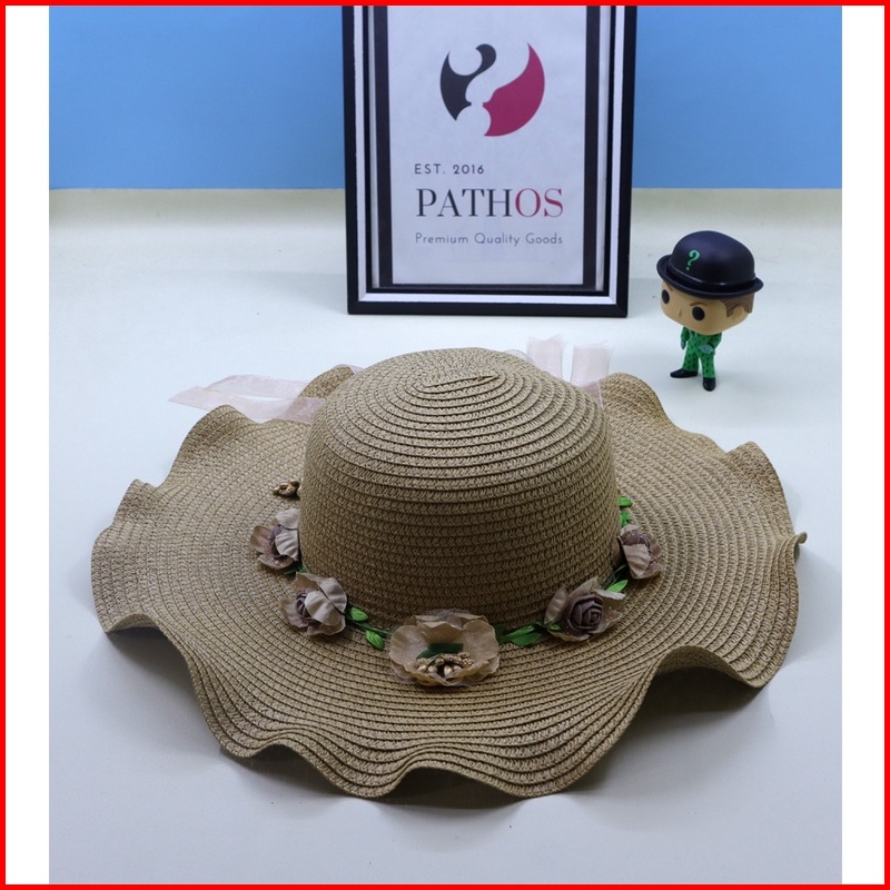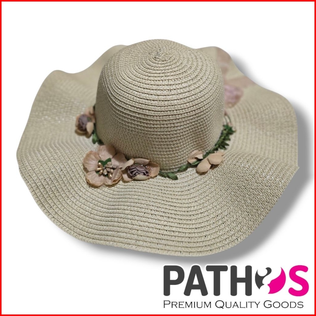 Topi Pantai Wanita Import Bunga Flower Wide Brean Sun Hat Papper