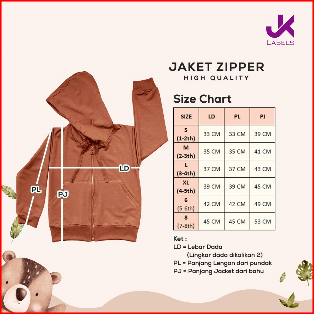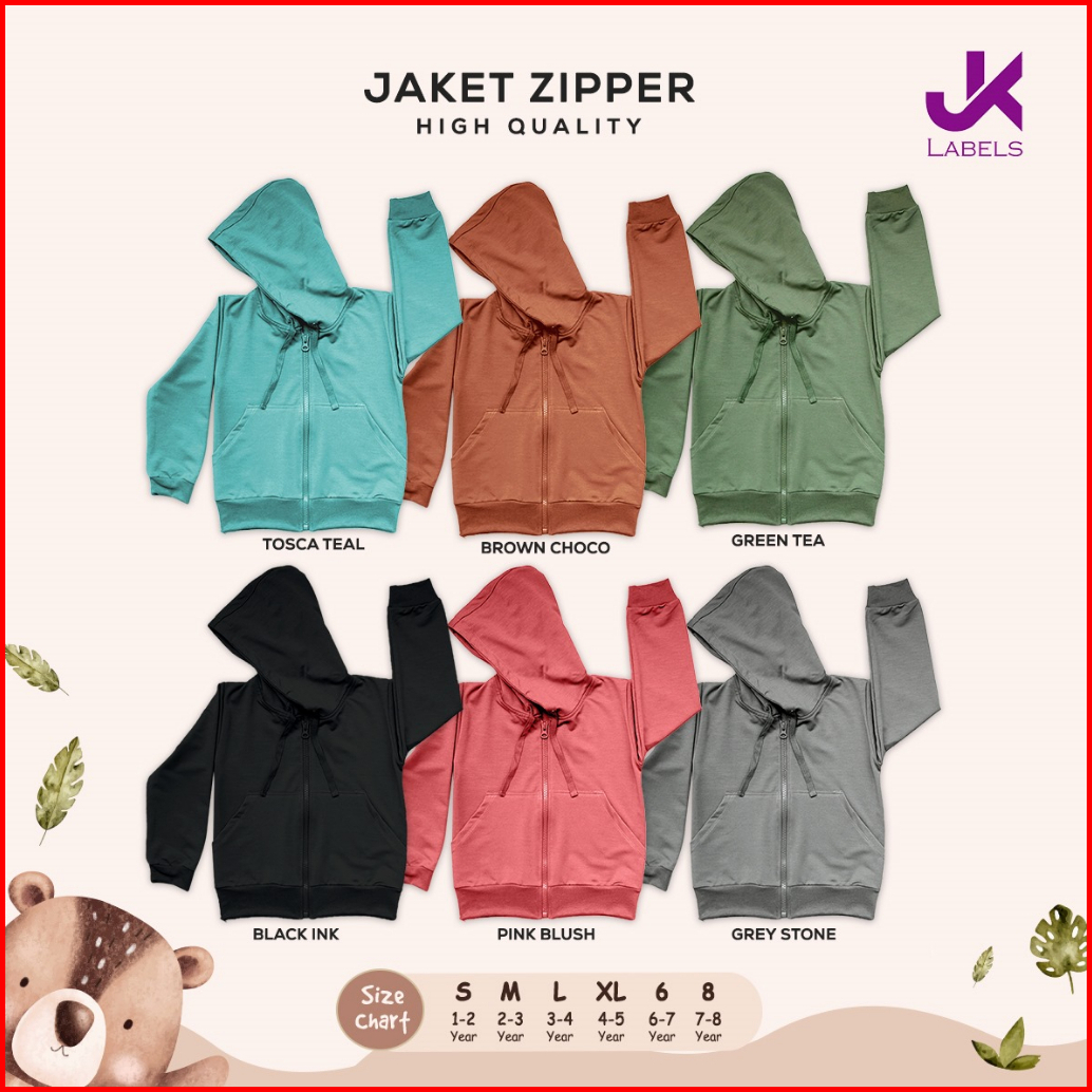 Zipper Hoodie 1-8 Tahun Jaket Panjang Anak Unisex Cbks Jk Labels Sdi