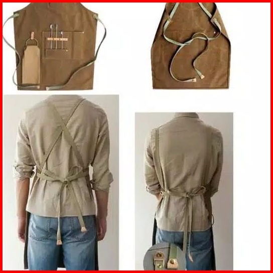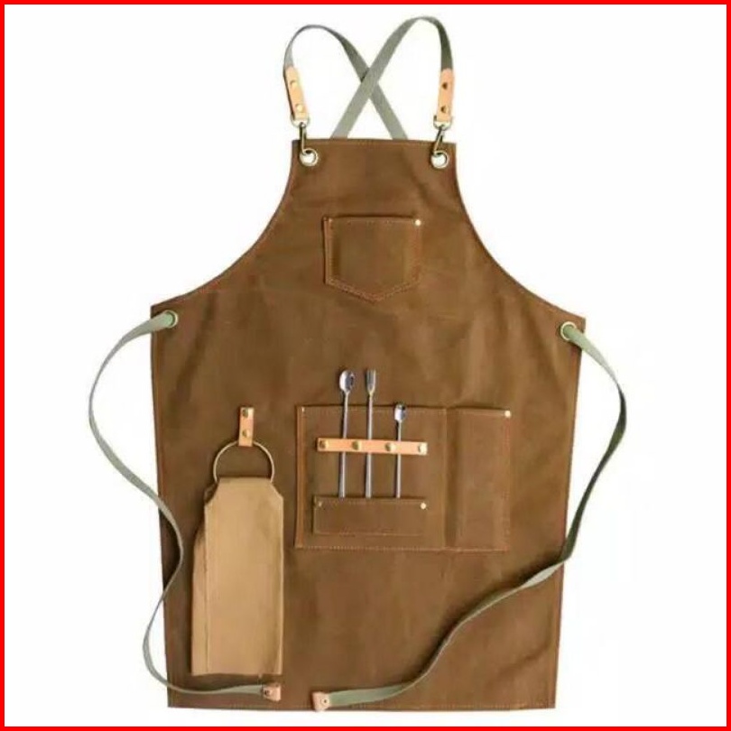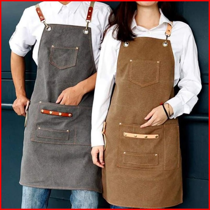 Apron Barbershop Canvas Leather Celemek Barista Waiter Pria Wanita Unisex Handmade Original