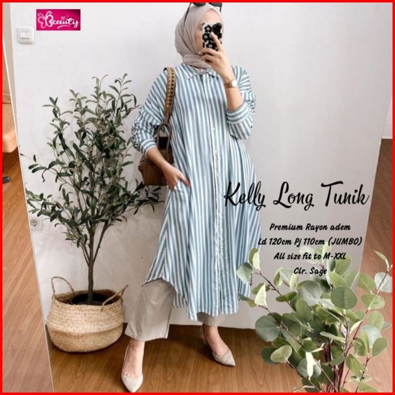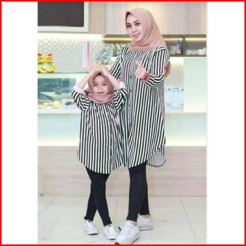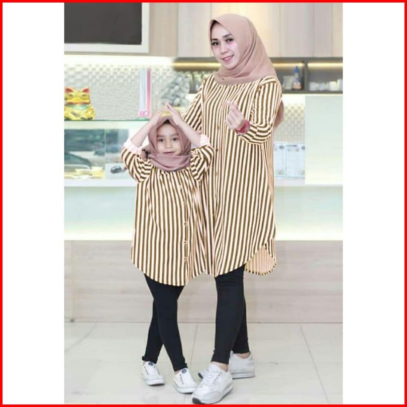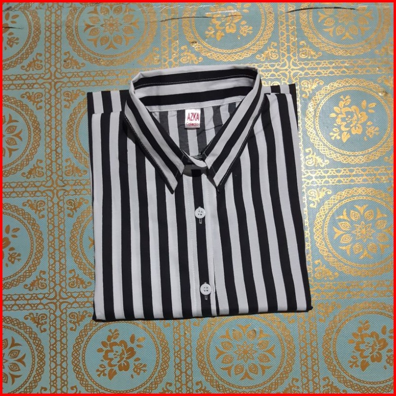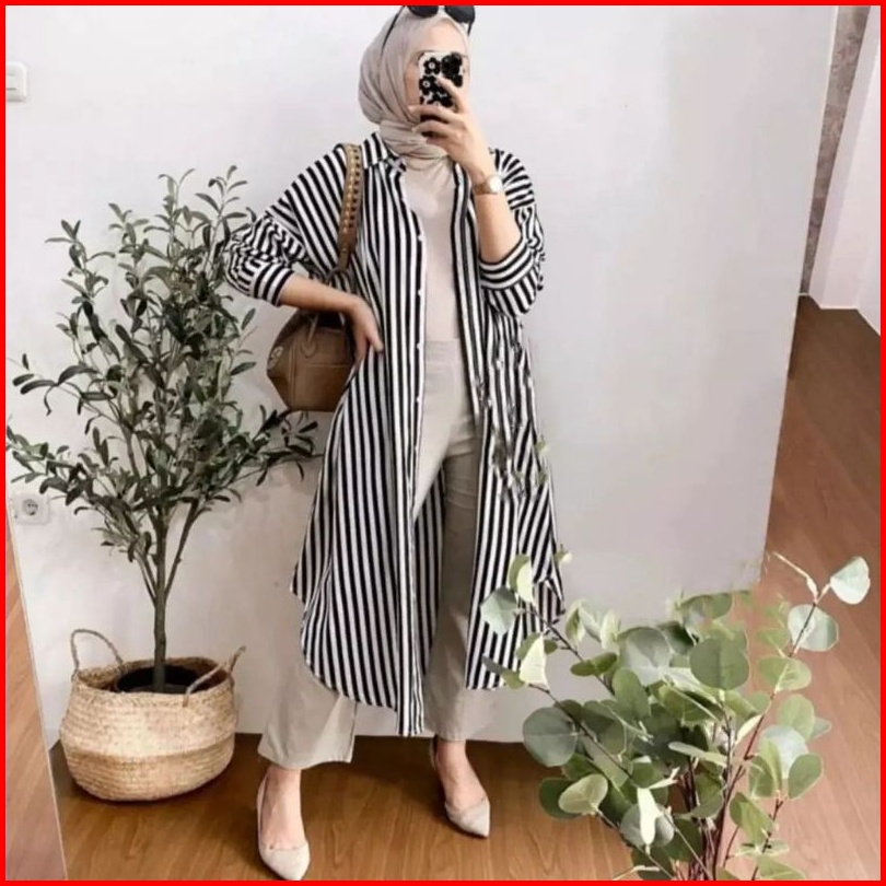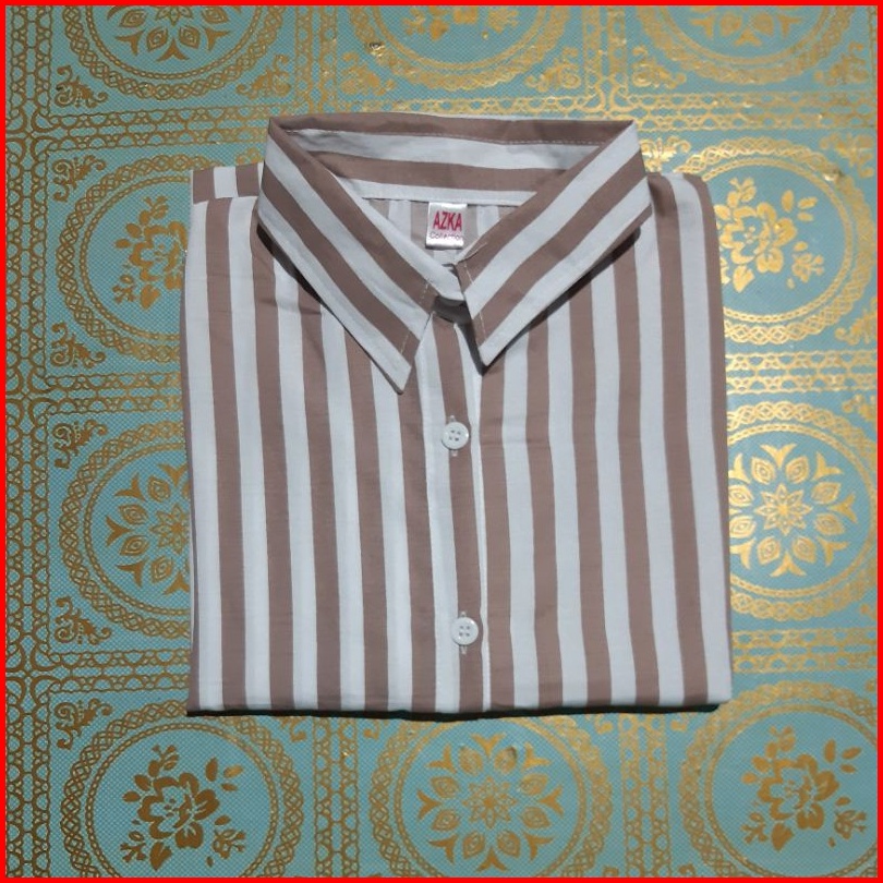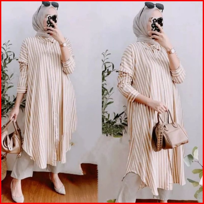 Tunik Kemeja Lengan Panjang Wanita Bahan Rayon Premium Adem Motif Garis Strepe By Azka Collection