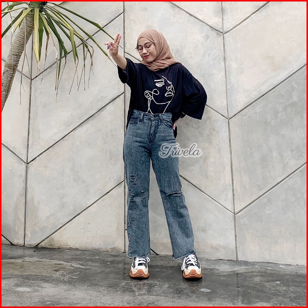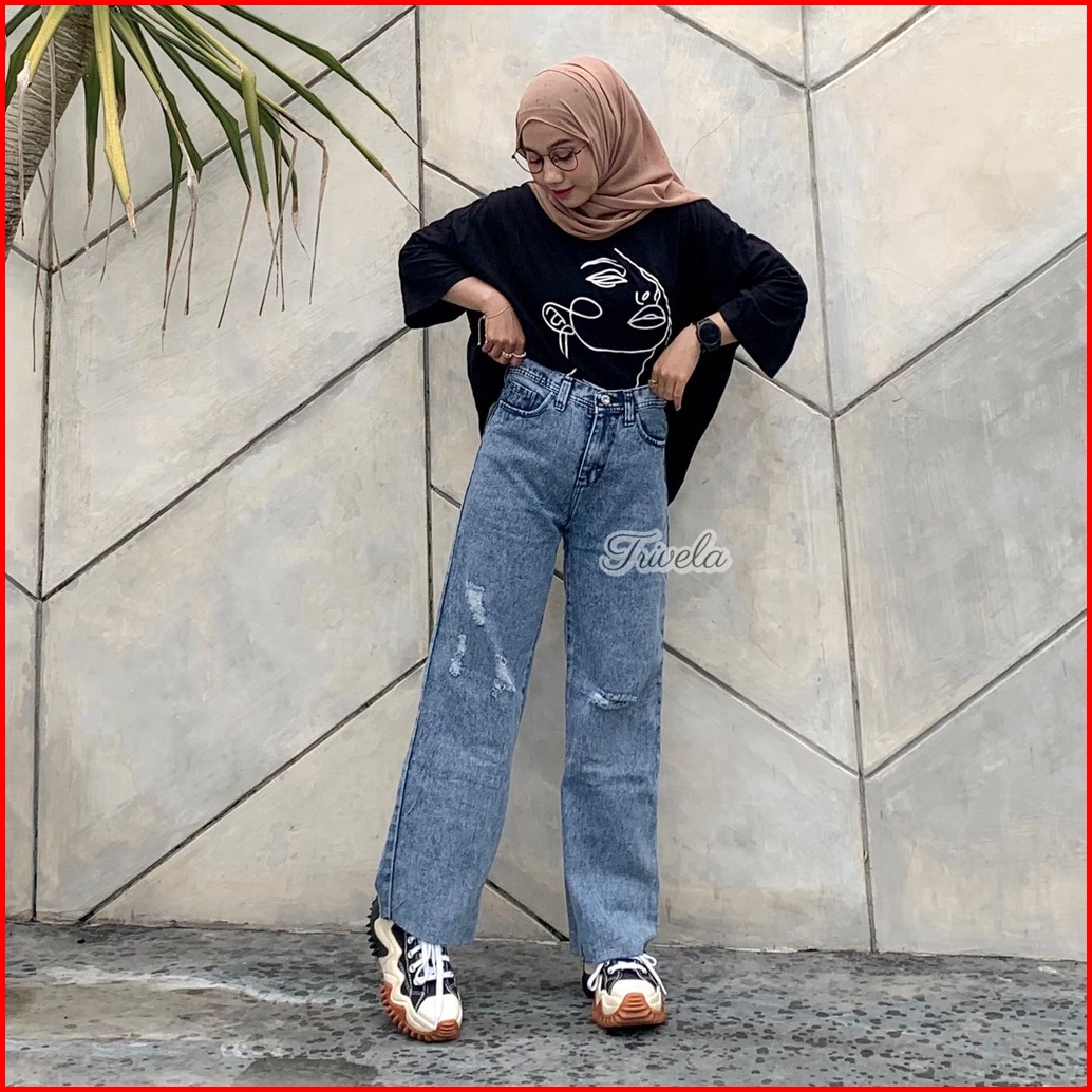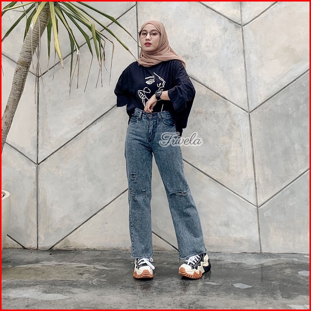 Trivela - Kulot Snow Sobek Kulot Jeans Ripped Unfinished Lally