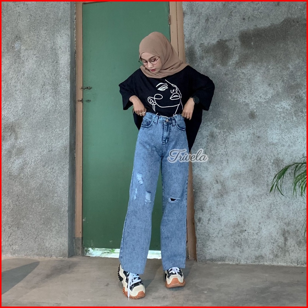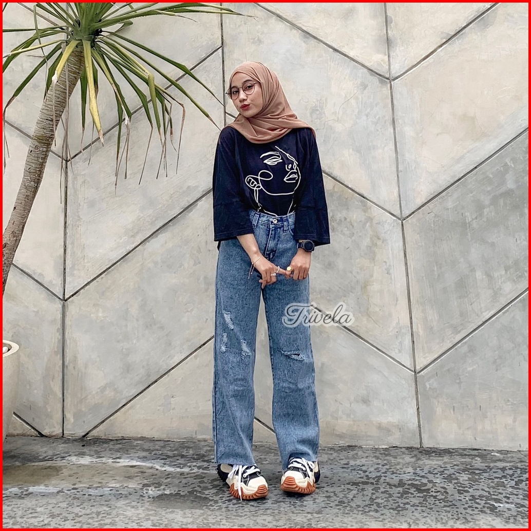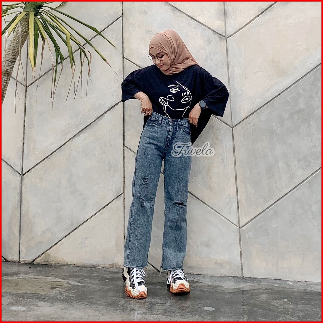 Trivela - Kulot Snow Sobek Kulot Jeans Ripped Unfinished Lally