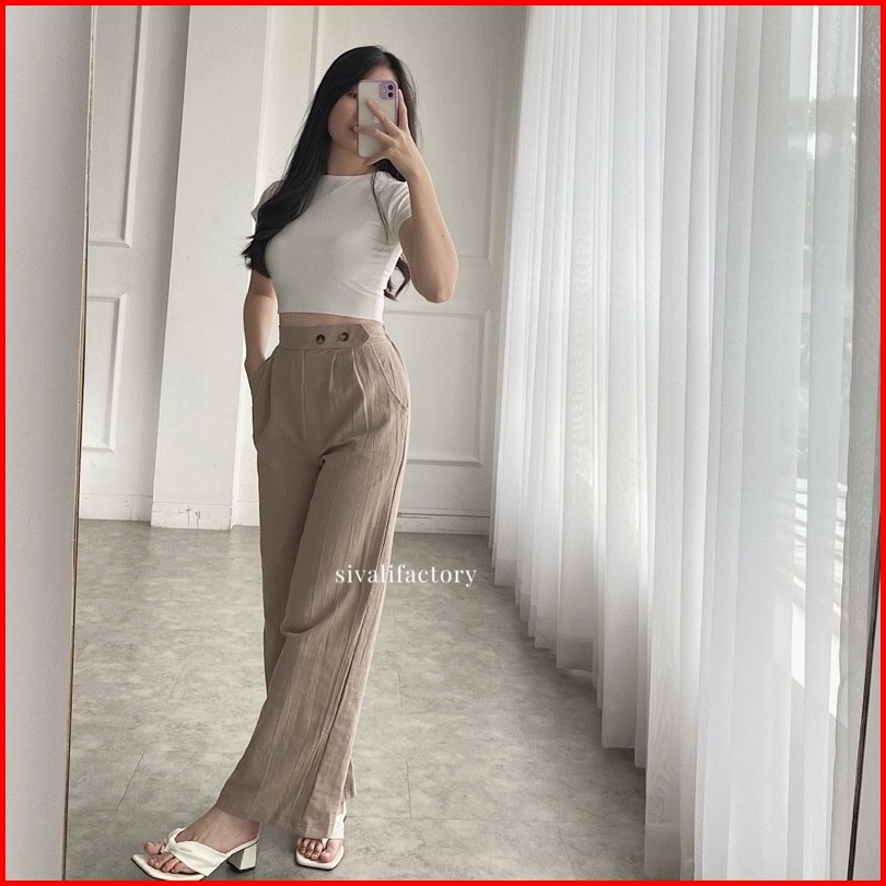 Celana Kulot Linen Highwaist Premium 2240 Side Button - Cullote Pants - Celana Kulot Linen Wanita Four Button Noza