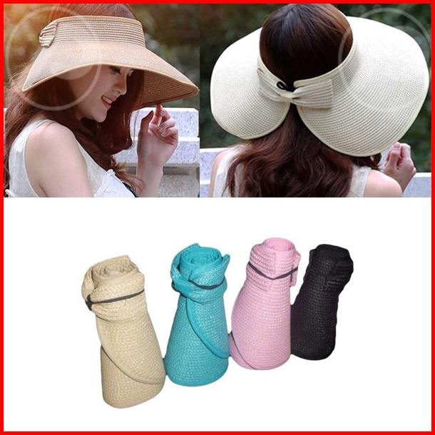 Topi Pantai Wanita Lipat Roll Hat Import Hitam Navy Lebar