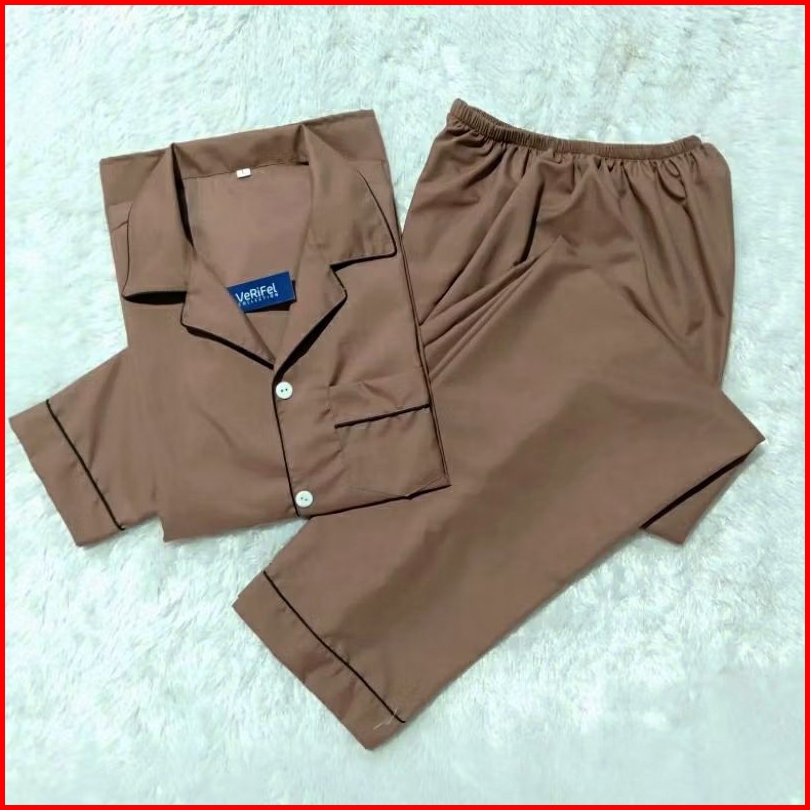 Verifel Piyama Polos Baju Tidur Pria Wanita Remaja Dewasa Jumbo Katun Lembut Promo Murah Harga Grosir Fit To 90kg 175cm