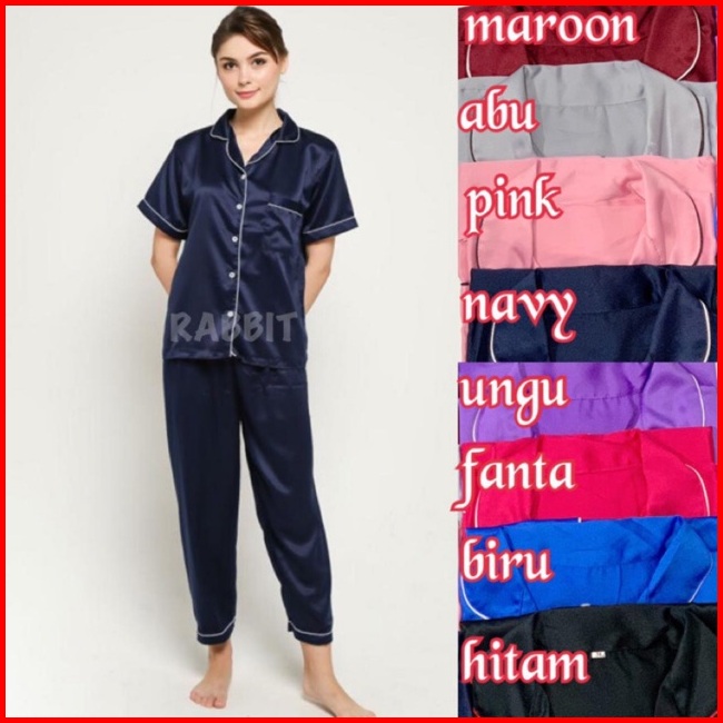 Piyama Satin Exclusive Polos Bajutidur Lengam Pemdek Celana Panjng Abg