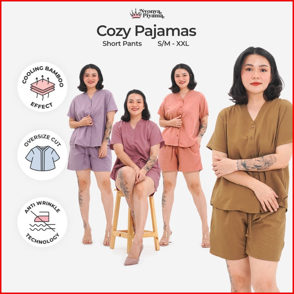Best Seller Nyonya Piyama Poly Bamboo Oversized Cozy Set Celana Pendek Polos Vol 1