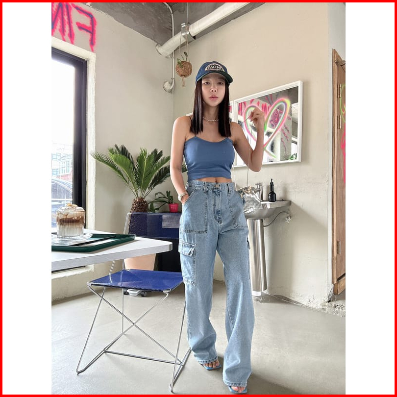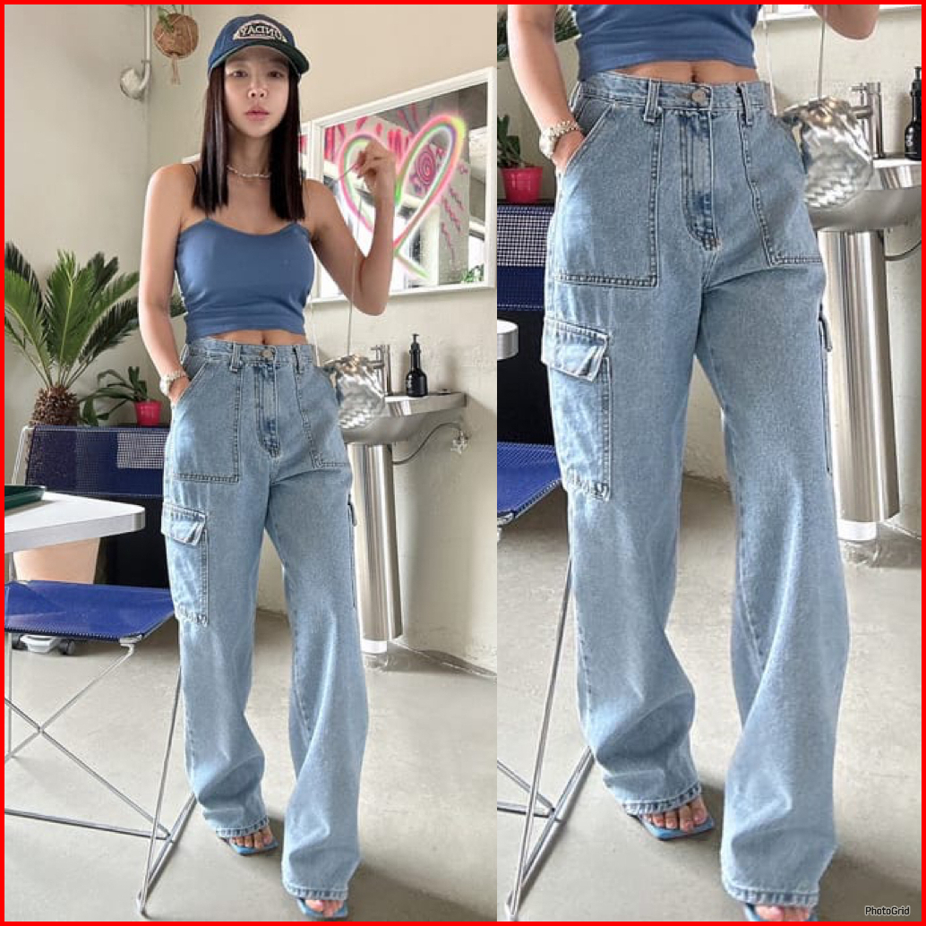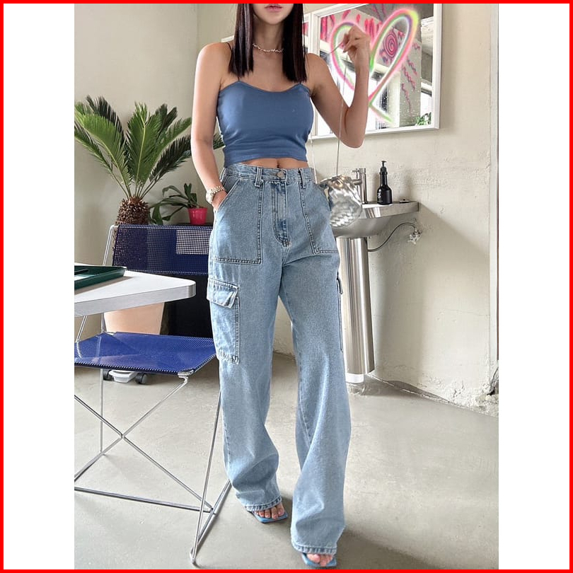 Trivela - Celana Jeans Loose Cargo Kantong Tempel Wanita - Cargo Alice Jeans - Carlice