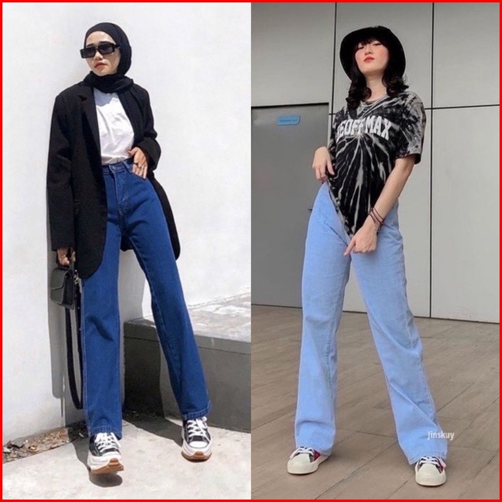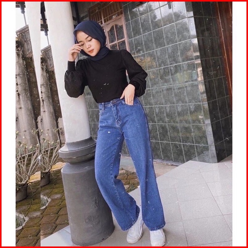 Trivela Highwaist Jeans Kulot Wanita Loose Plainloose