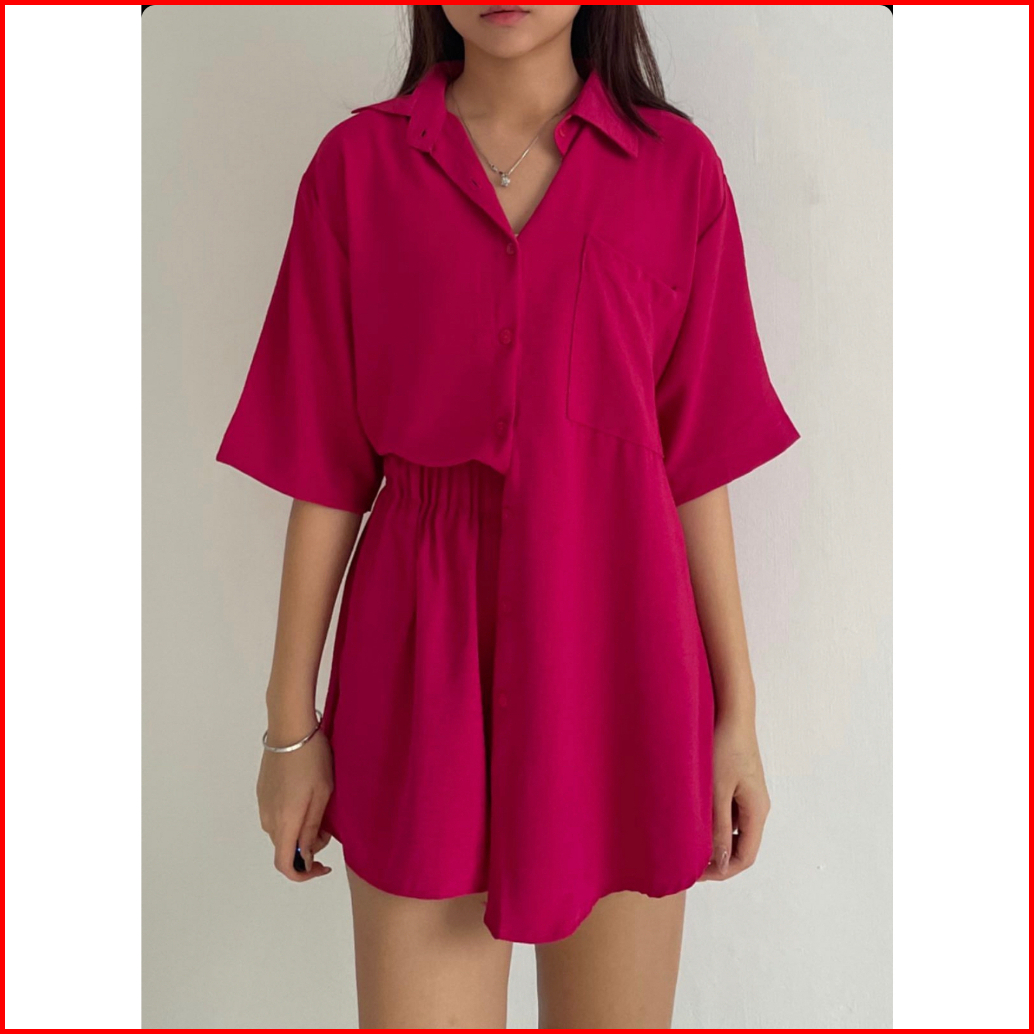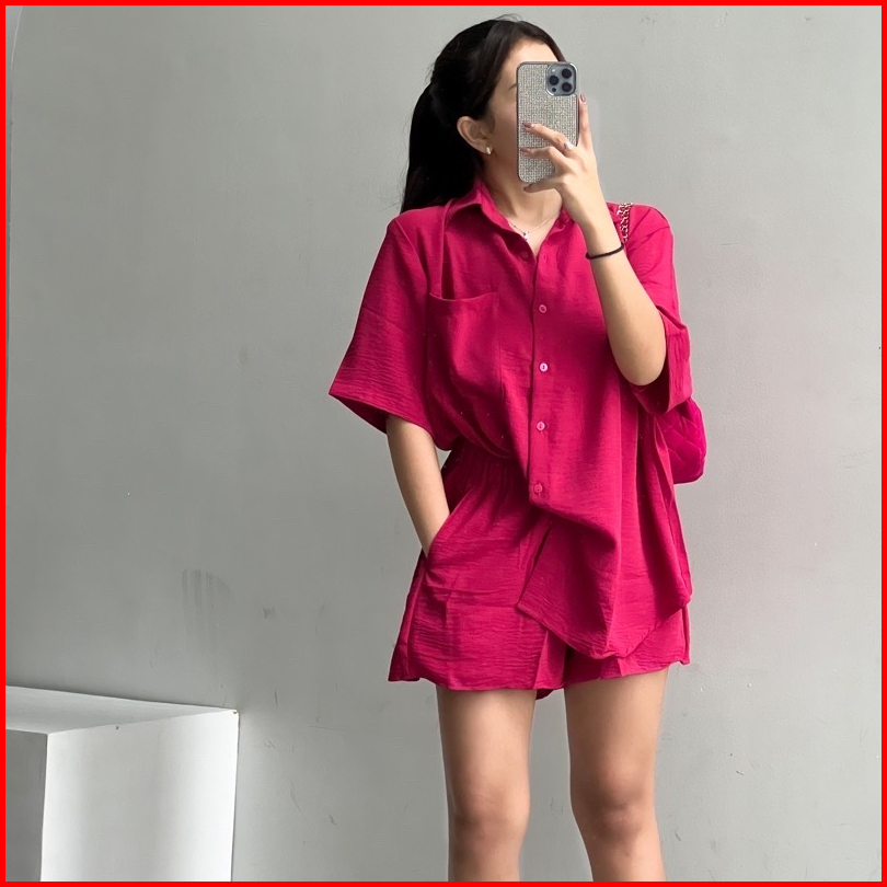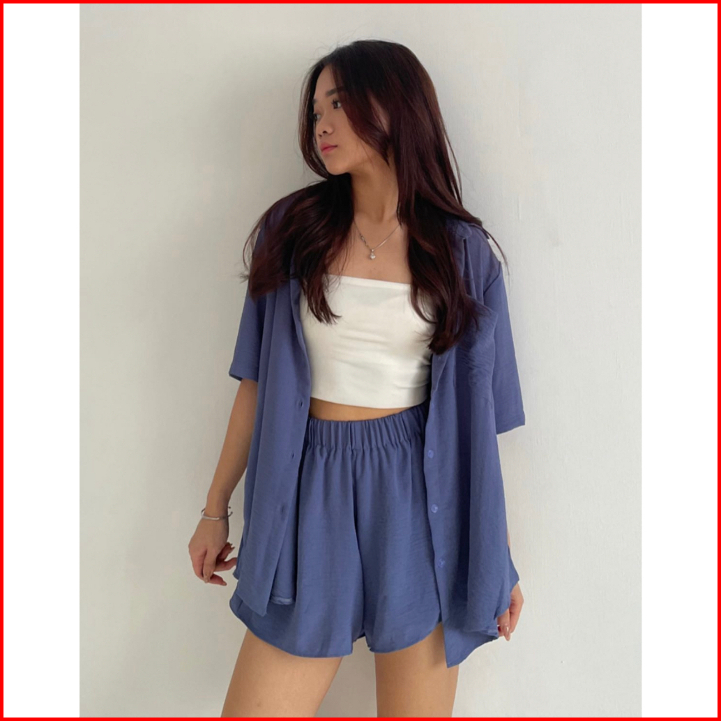 Trivela - Shanon Set Crinkle Setelan Celana Pendek Wanita Chloe Sjj